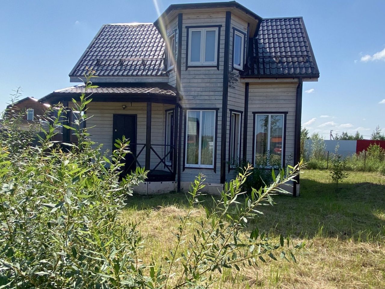 Каркасный дом, площадью 88 кв. м., построен на свайно-винтовом фундаменте, хорошо утеплен, снаружи и изнутри обшит вагонкой. Крыша - металлочерепица. Окна ПВХ. Используется для круглогодичного проживания.