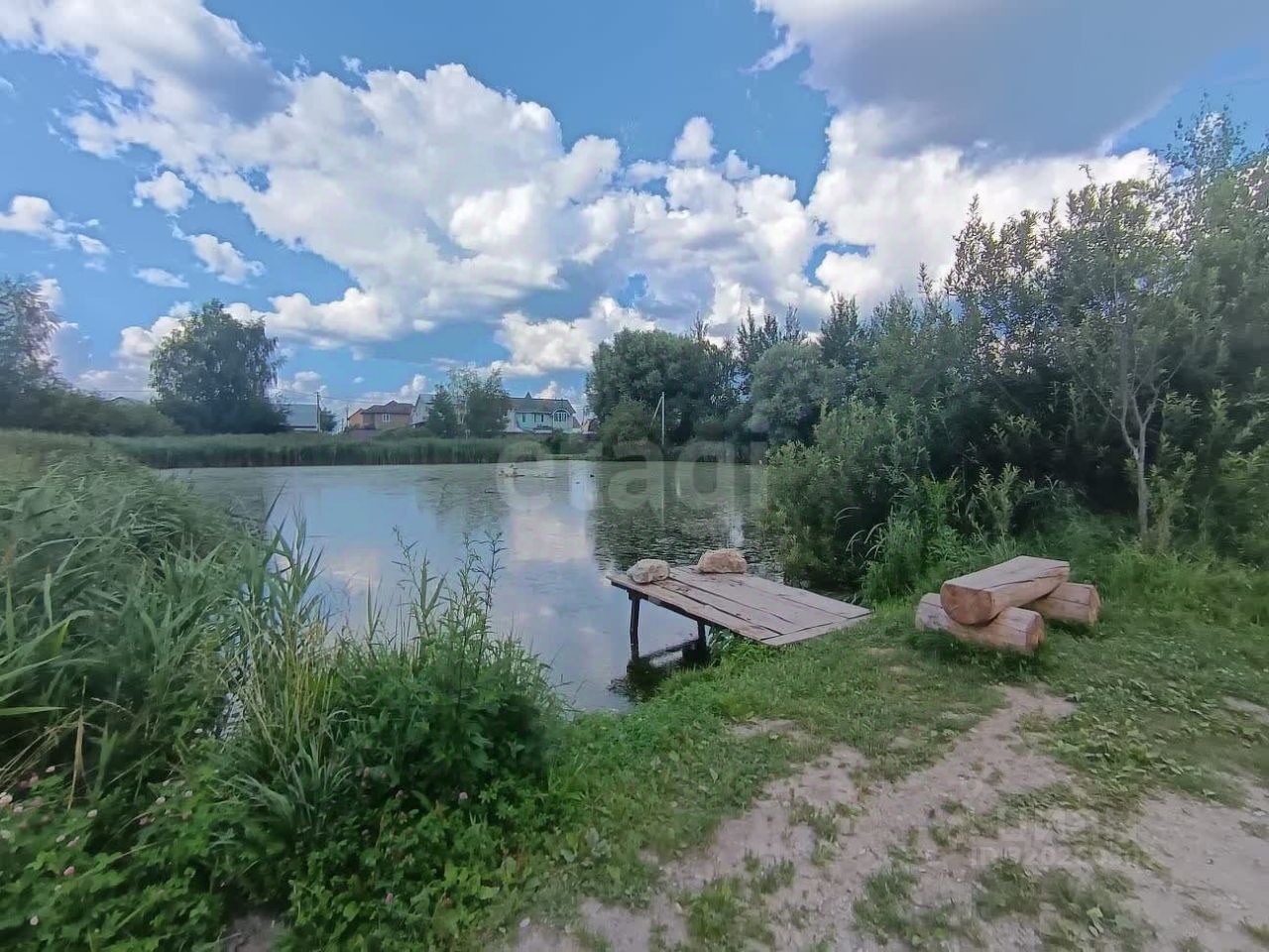 Участок граничит с лесом и природным прудом, создавая атмосферу уединения и близости к природе. В пешей доступности находится река Гжелка с чистыми озерами, подходящими для рыбалки и отдыха на свежем воздухе. Инфраструктура поселка включает школу, детский сад, поликлинику, почту, магазины, баню, дом культуры и спортивный клуб — все необходимое для комфортной жизни за городом. Транспортная доступность хорошо развита: остановка общественного транспорта расположена в 20 минутах ходьбы, до станции МЦД-3 Ипподром можно доехать за 15 минут на автомобиле, а станция Совхоз находится в 20 минутах пешком.
