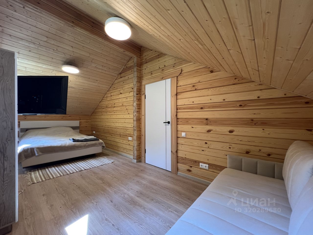 Планировка: 1й этаж прихожая, котельная, кухня-гостиная, комната отдыха, туалет, душевая, сауна, 2й этаж две большие спальные комнаты.