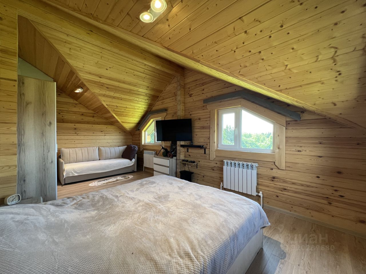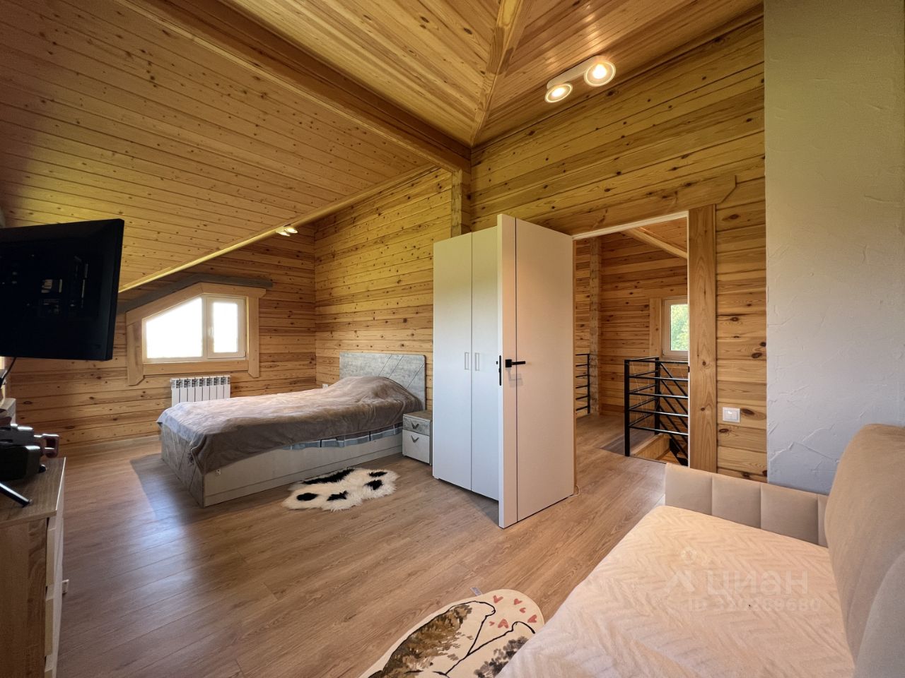 Планировка: 1й этаж прихожая, котельная, кухня-гостиная, комната отдыха, туалет, душевая, сауна, 2й этаж две большие спальные комнаты.