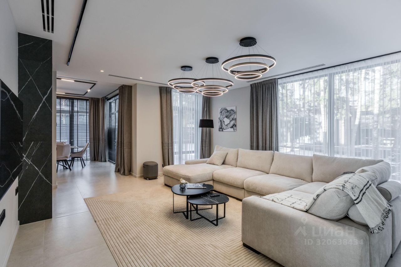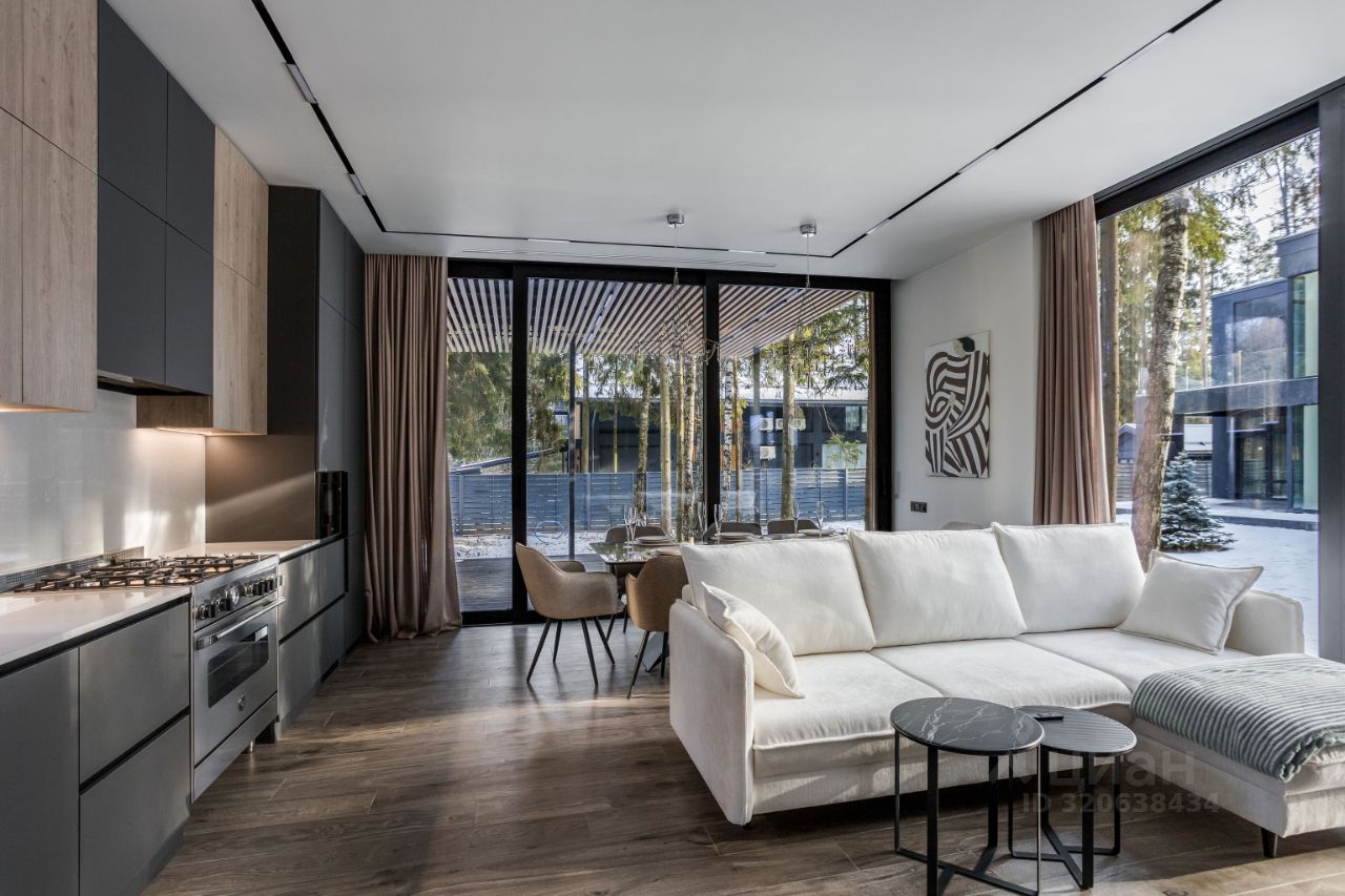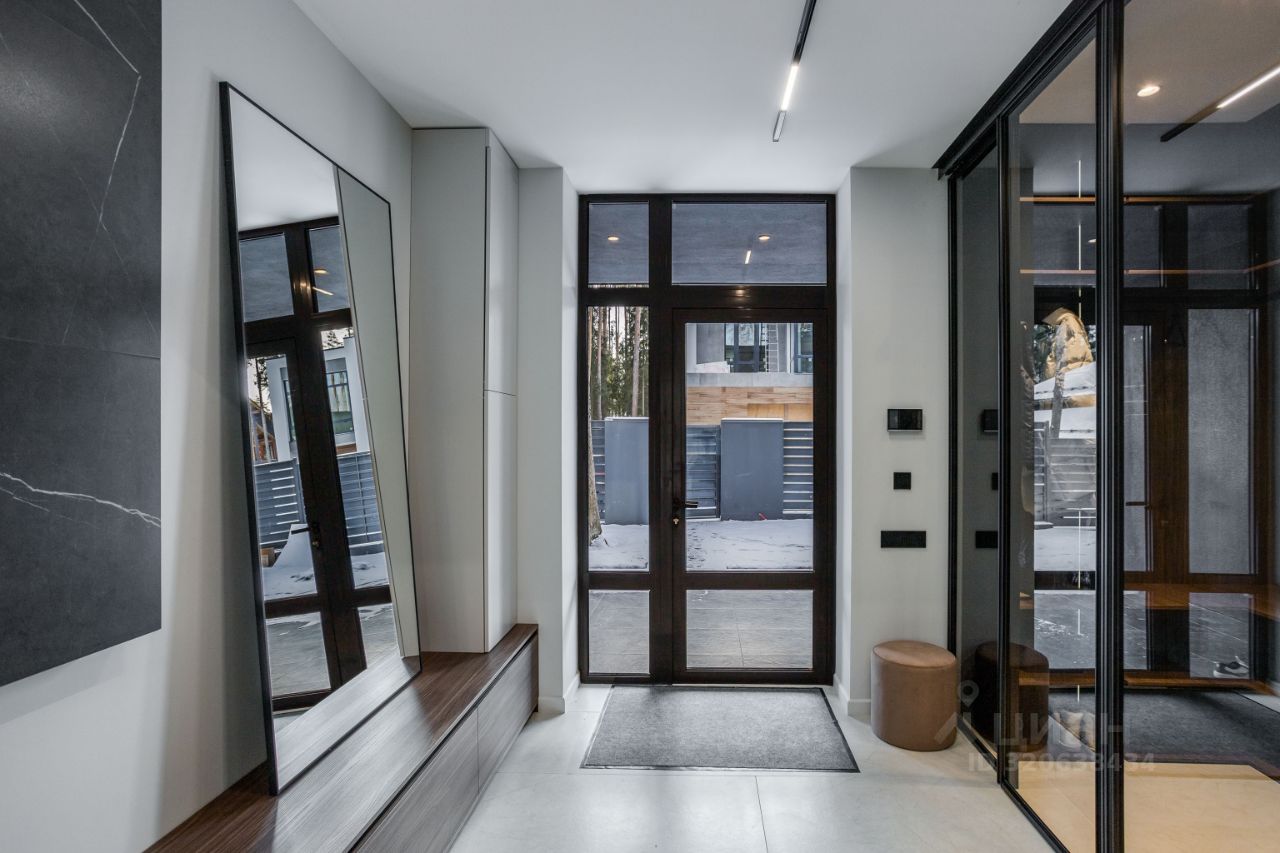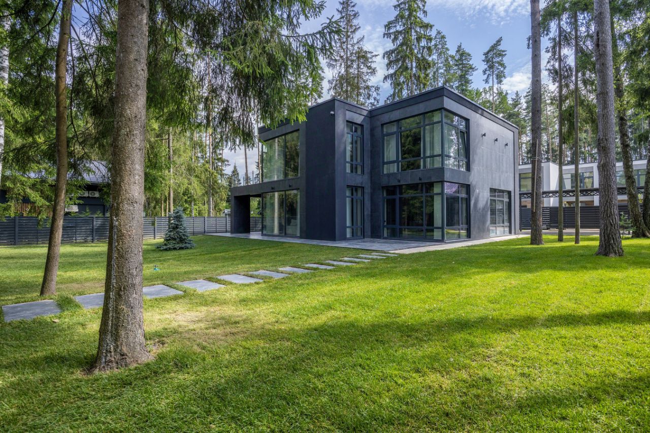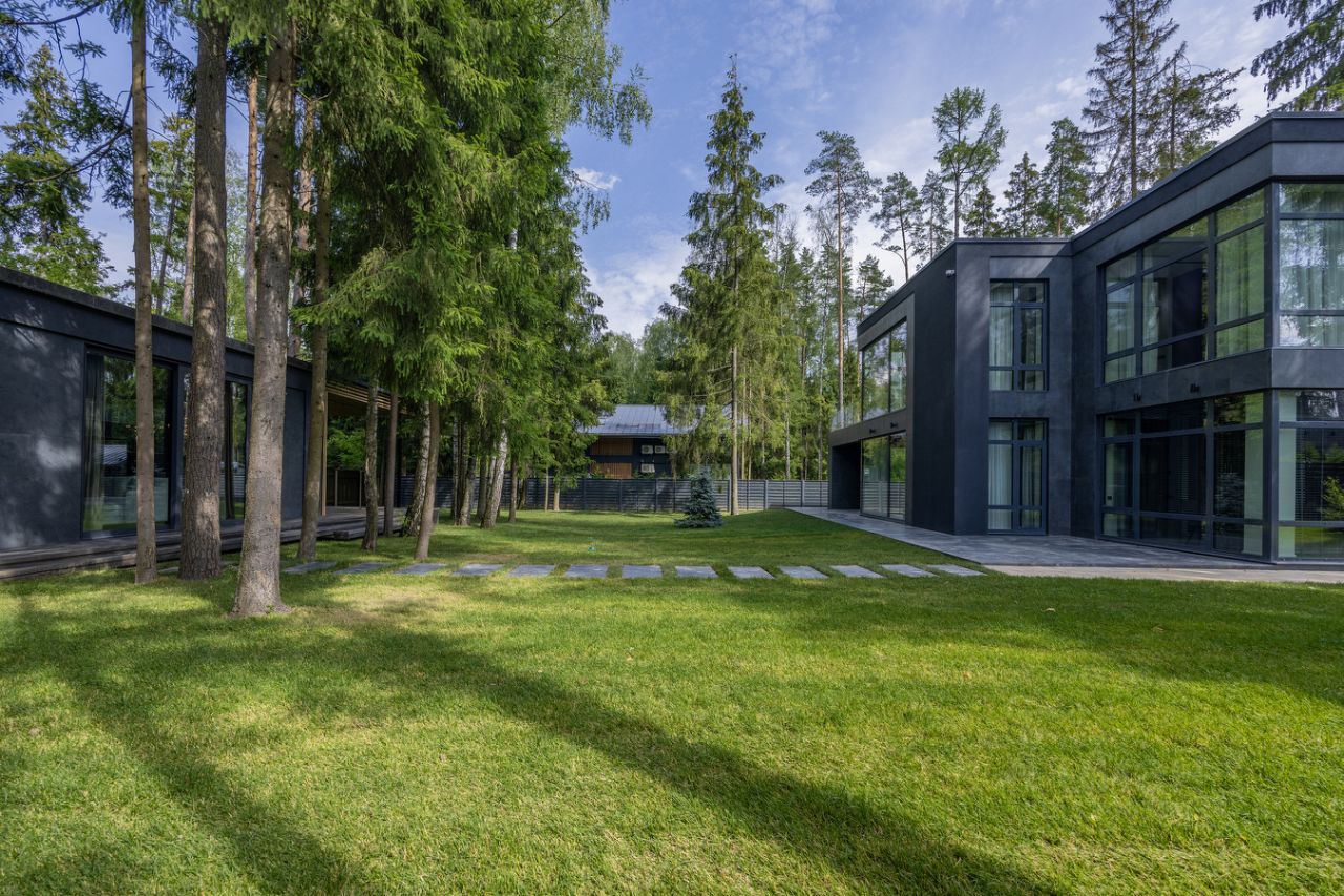 ЭКСКЛЮЗИВ Villagio Realty. В камерном охраняемом поселке, утопая в хвойных деревьях, расположился современный новый дом площадью 466 м2 c отдельно стоящей баней на участке в 13.5 соток. Продуманная планировка, панорамное остекление с видом на вековые деревья вкупе дают небывалый уют.