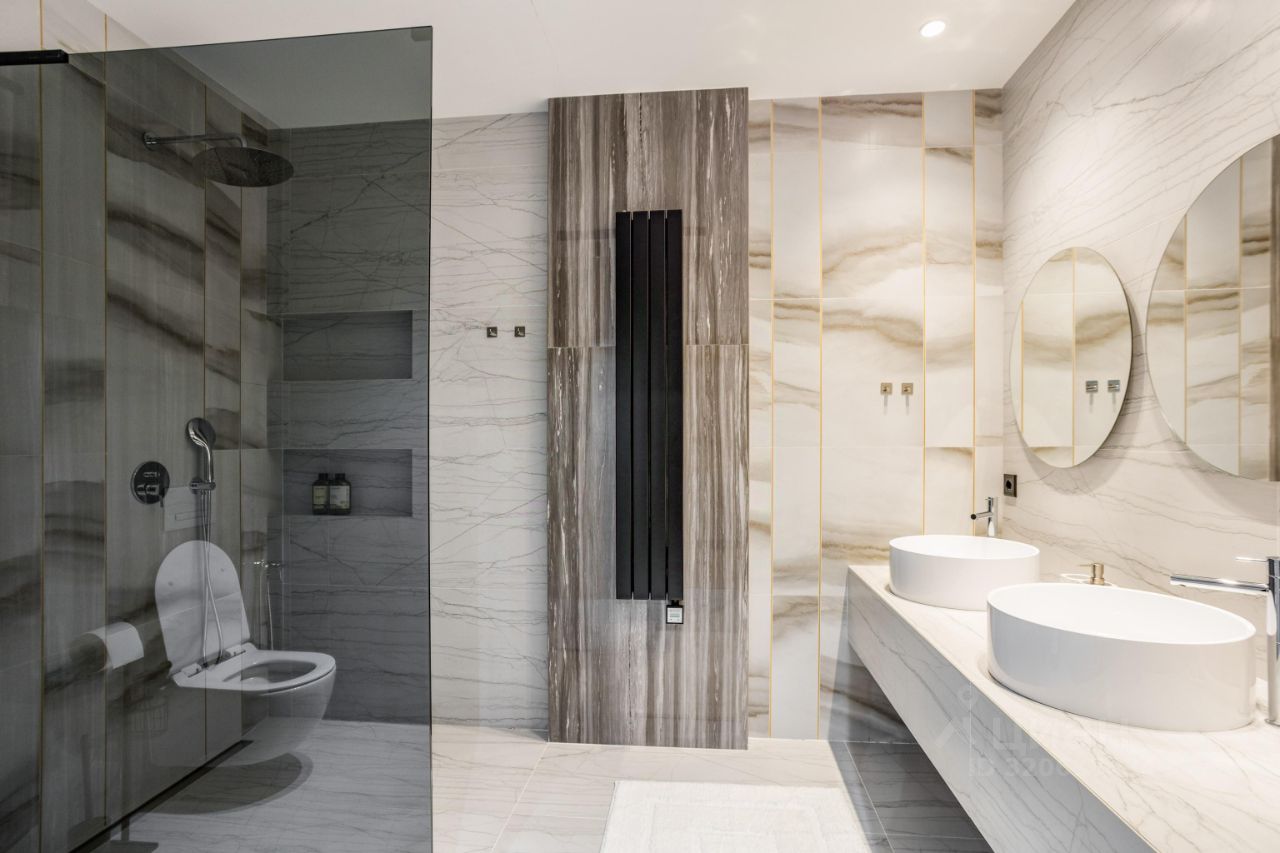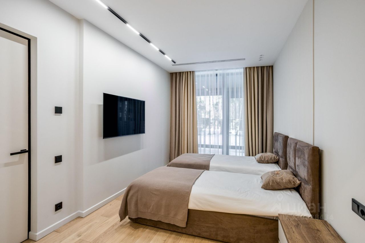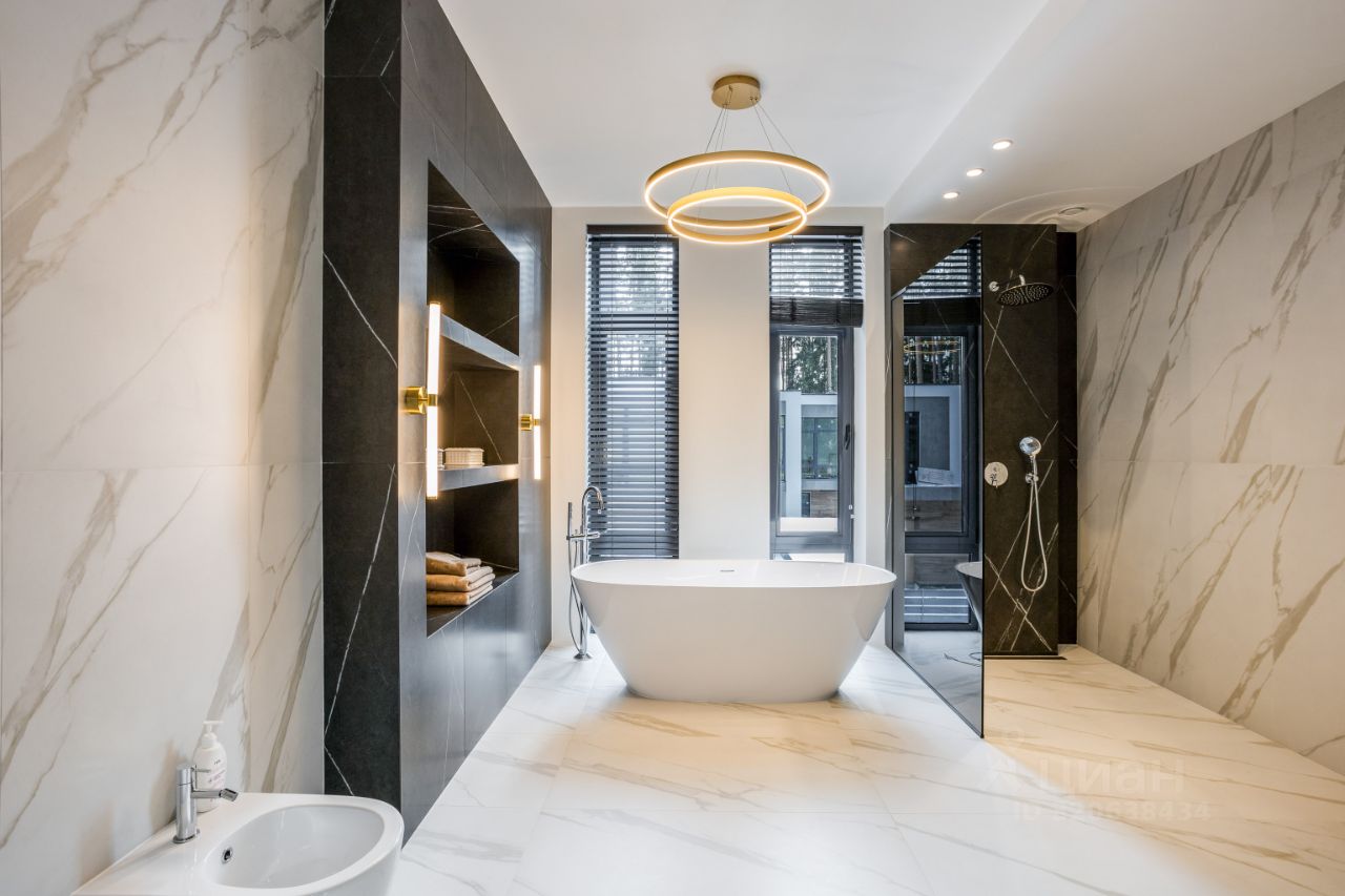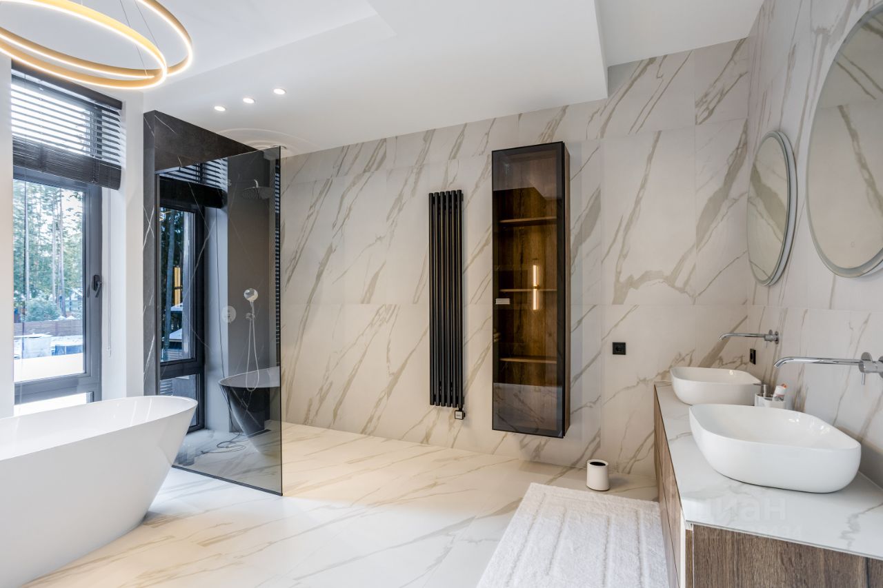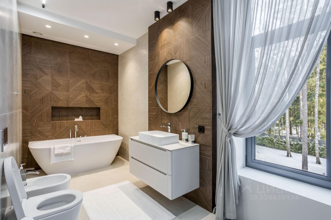 ЭКСКЛЮЗИВ Villagio Realty. В камерном охраняемом поселке, утопая в хвойных деревьях, расположился современный новый дом площадью 466 м2 c отдельно стоящей баней на участке в 13.5 соток. Продуманная планировка, панорамное остекление с видом на вековые деревья вкупе дают небывалый уют.