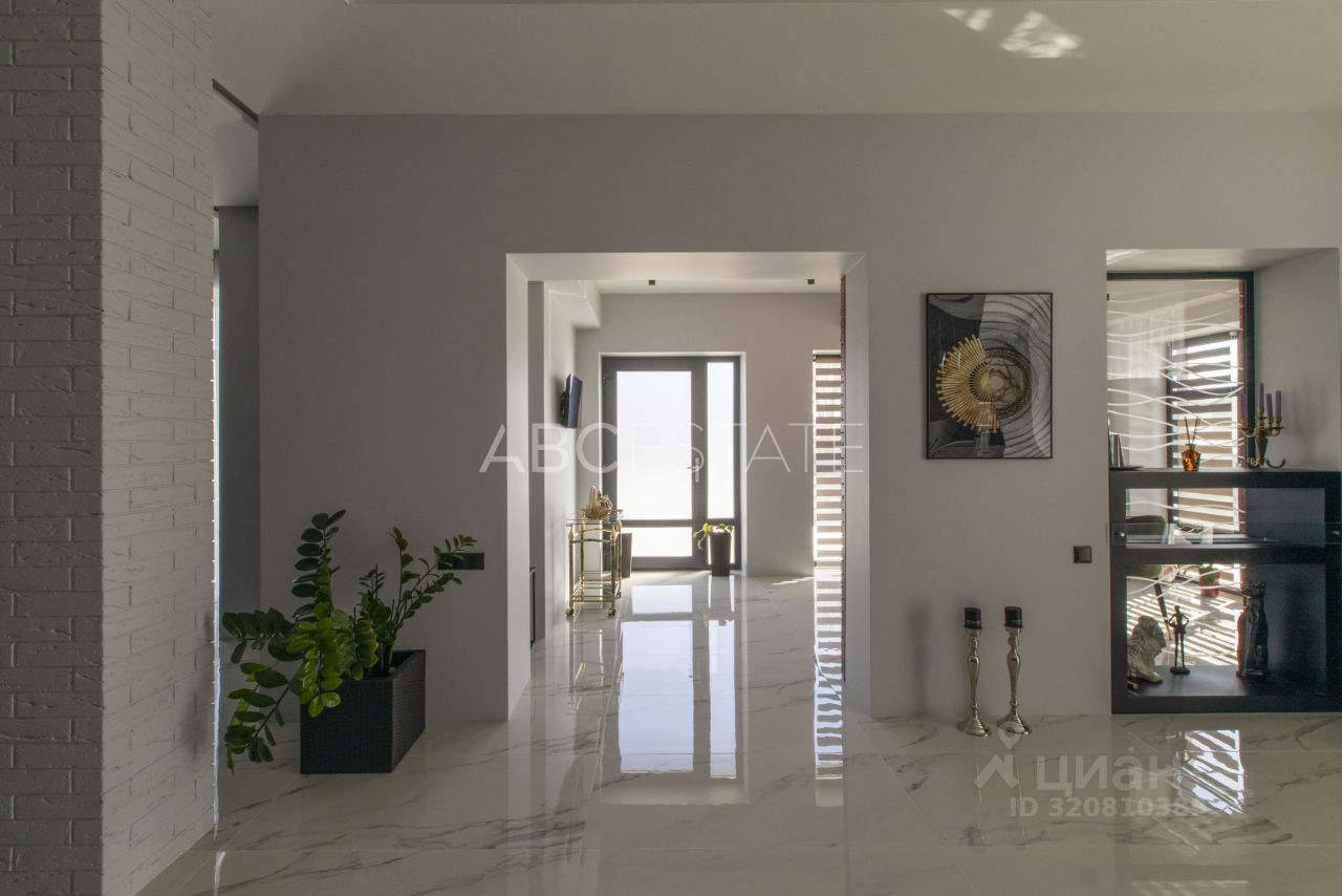 Планировка: 1 этаж: прихожая, просторная гостиная, кухня полностью оборудованная техникой, столовая с выходом на внутренний двор, прозрачный двусторонний электрокамин гармонично объединяет кухню с зоной столовой, добавляя тепла и динамики интерьеру, гостевая спальня/кабинет, SPA-зона с хамамом, сауной, душевой, сан узлом, комнатой отдыха с оборудованной кухней и выходом на террасу, гараж на 2 автомобиля, бойлерная. 2 этаж: Хозяйская спальня с санузлом, две спальни, сан. узел.