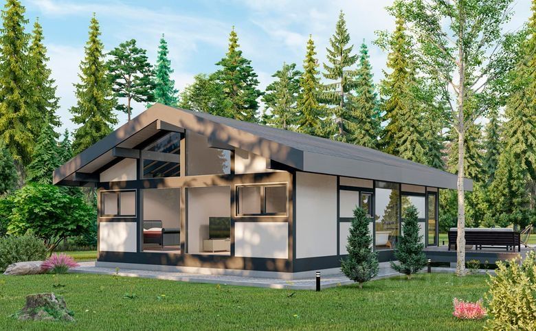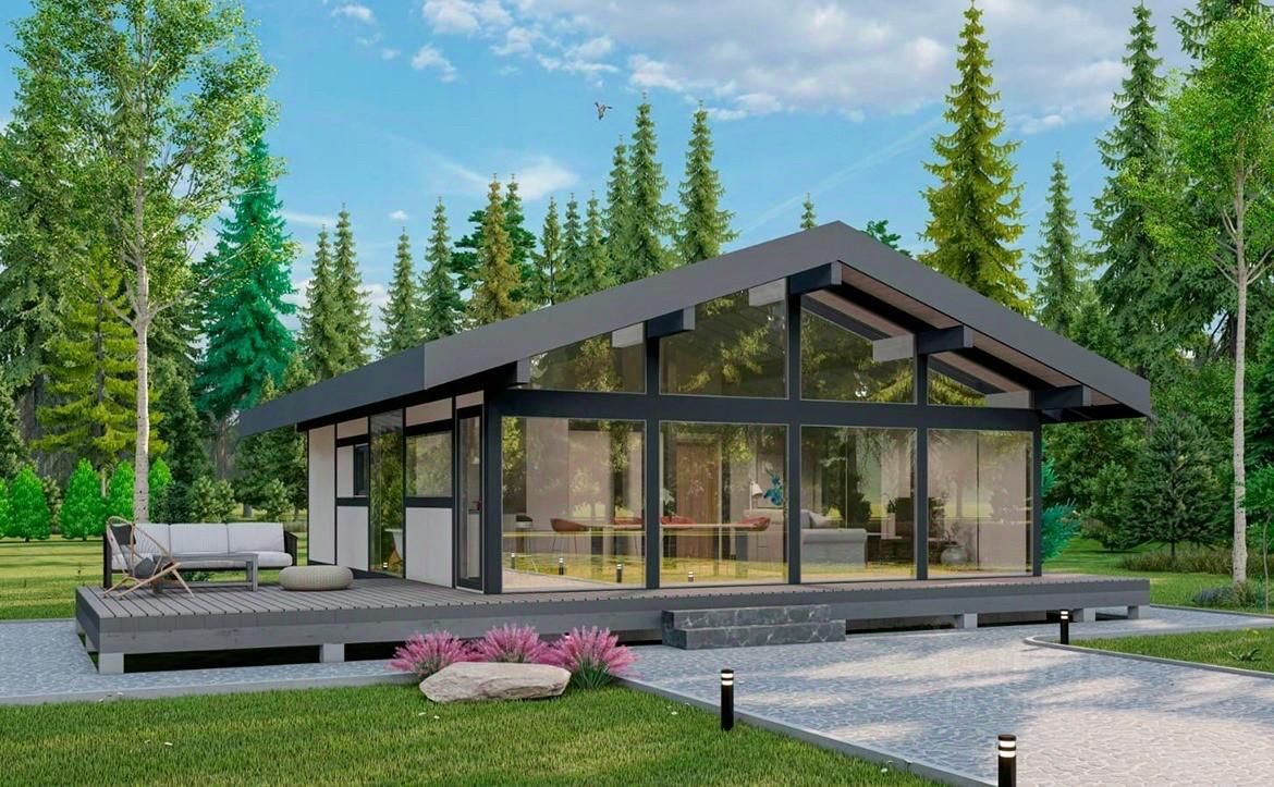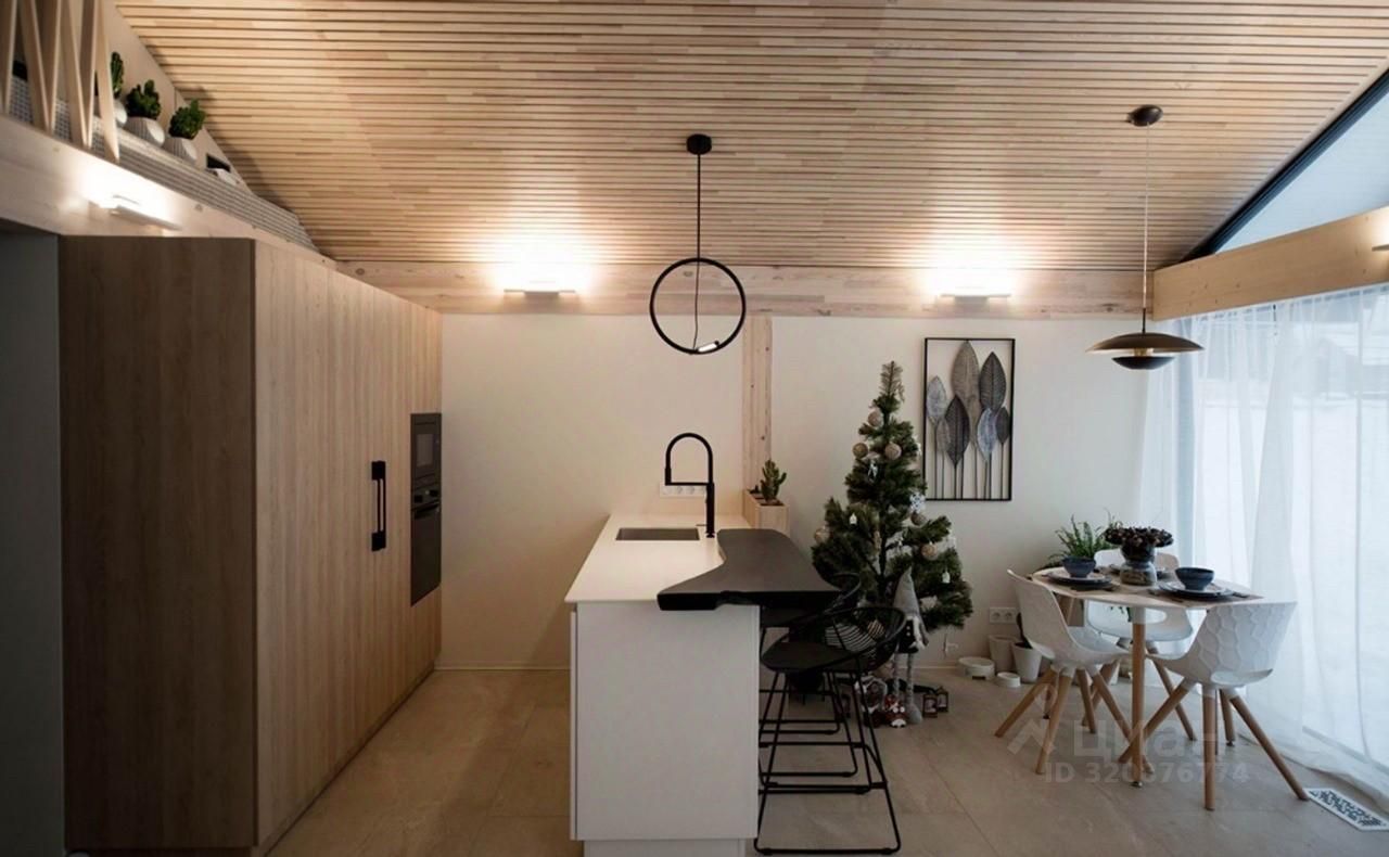 Внутреннее пространство дома составляет 35 кв. м., в котором предусмотрено 1 спальня. Высота потолков составляет 4,2 метра, окна — панорамные, увеличенные и второй свет. Дом находиться в СНТ-Фотон . На закрытой территории . Участок составляет 8.4 сот. Огражден профильным забором . По забору один сосед . Вокруг лес , иметься родник .