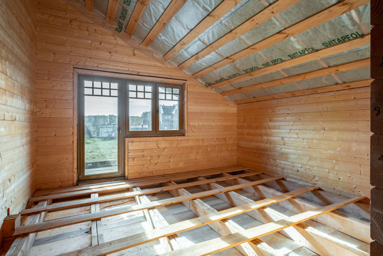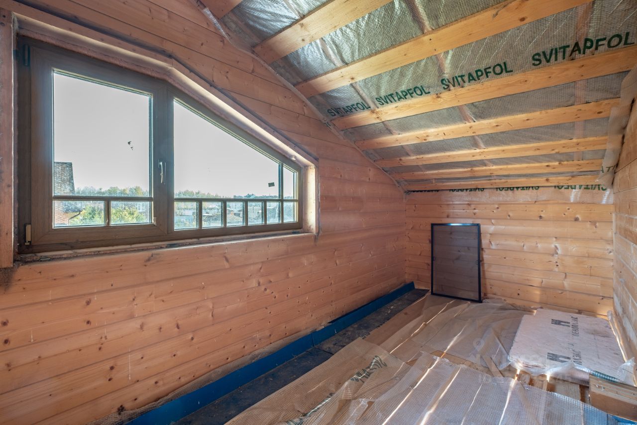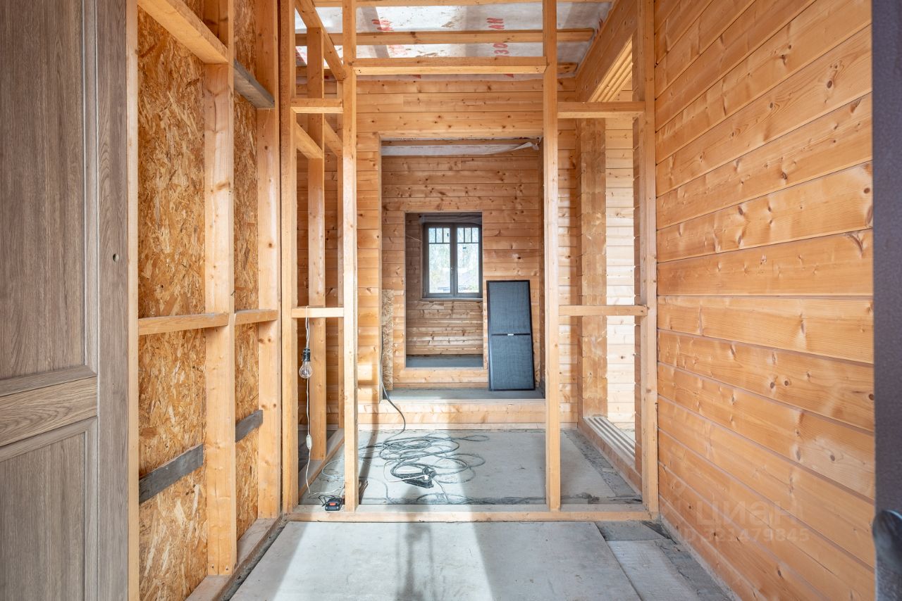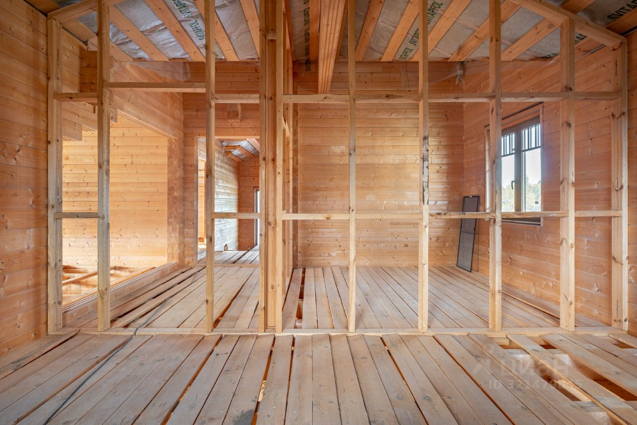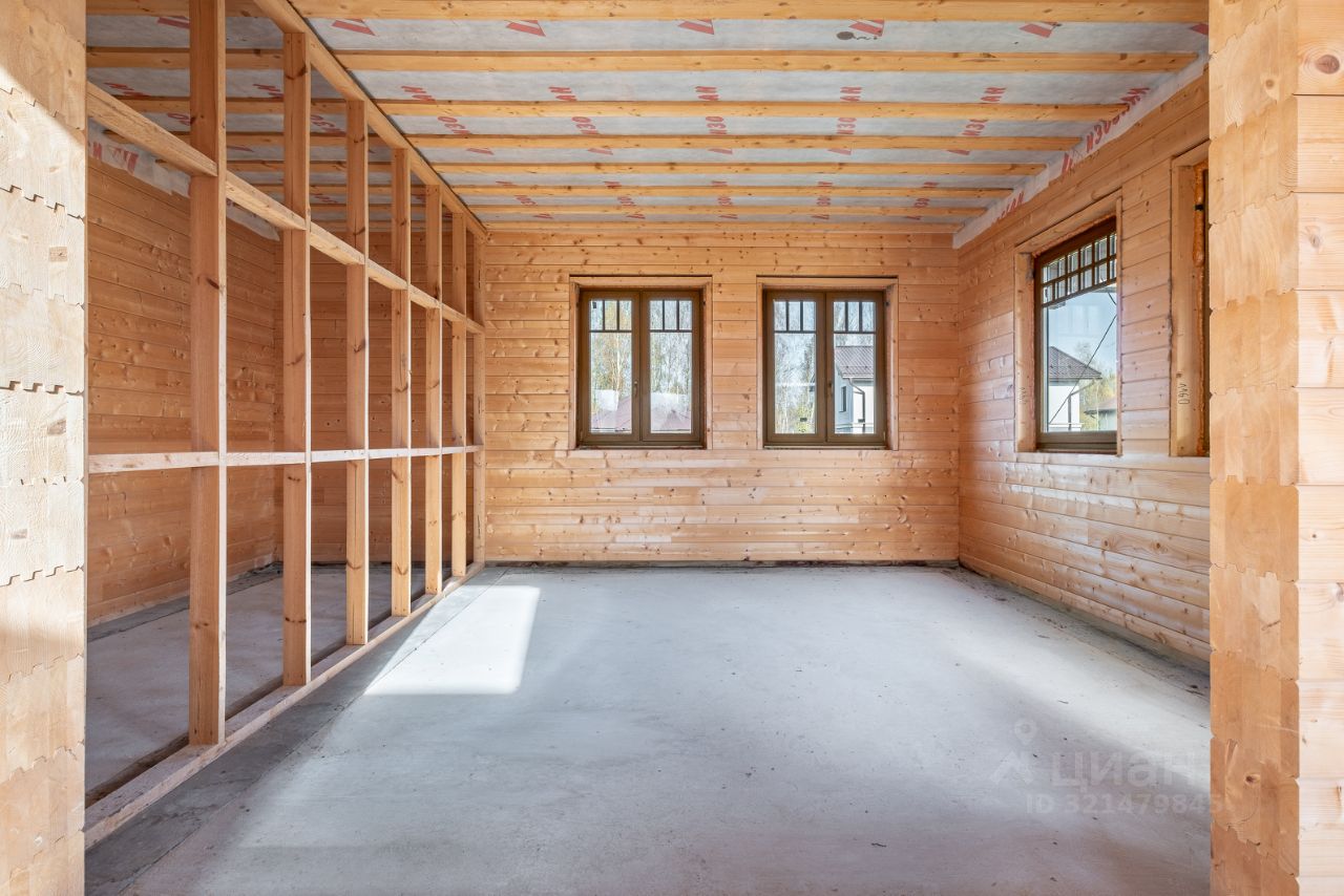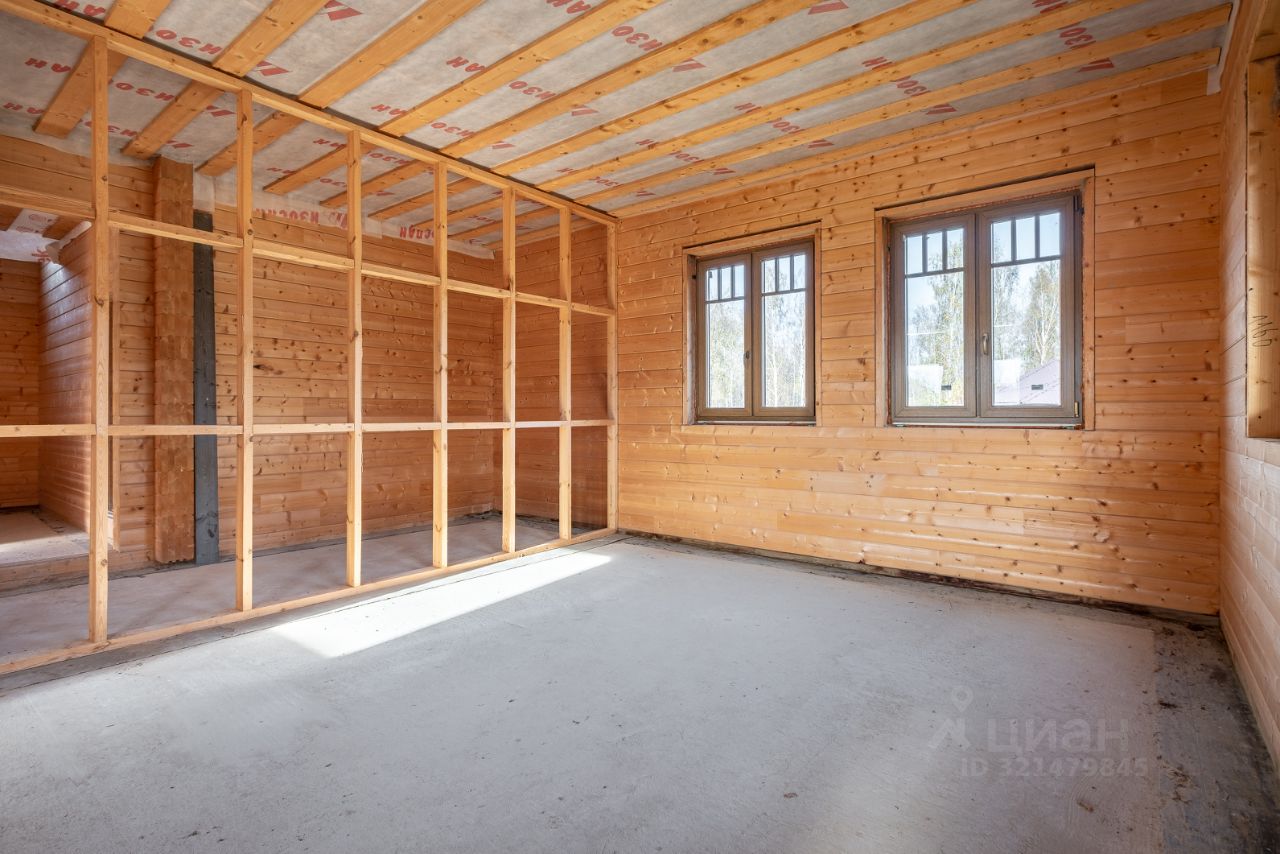 Площадь дома 195,6 кв.м. + терраса, балкон и подвал общий метраж 220 метров. Материал: клеёный брус (200мм), крыша мягкая черепица цвета Джинса. Высокий фундамент: буронабивные сваи, ленточная бетонная. Бетонный подвал в рост, залит фундамент под камин, утепленная крыша, а на участке проведена планировка (выравнивание с градиентом уклона).