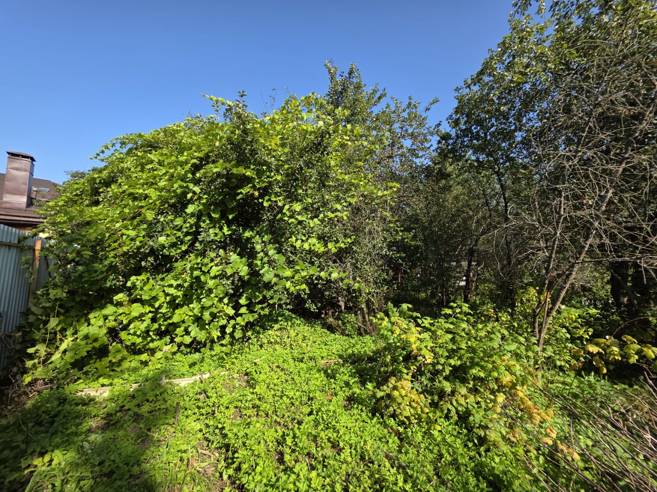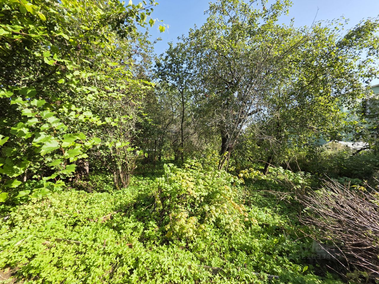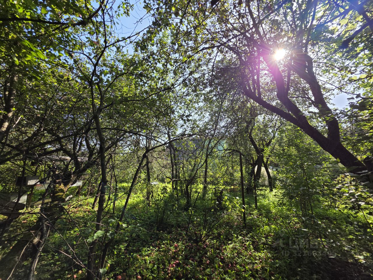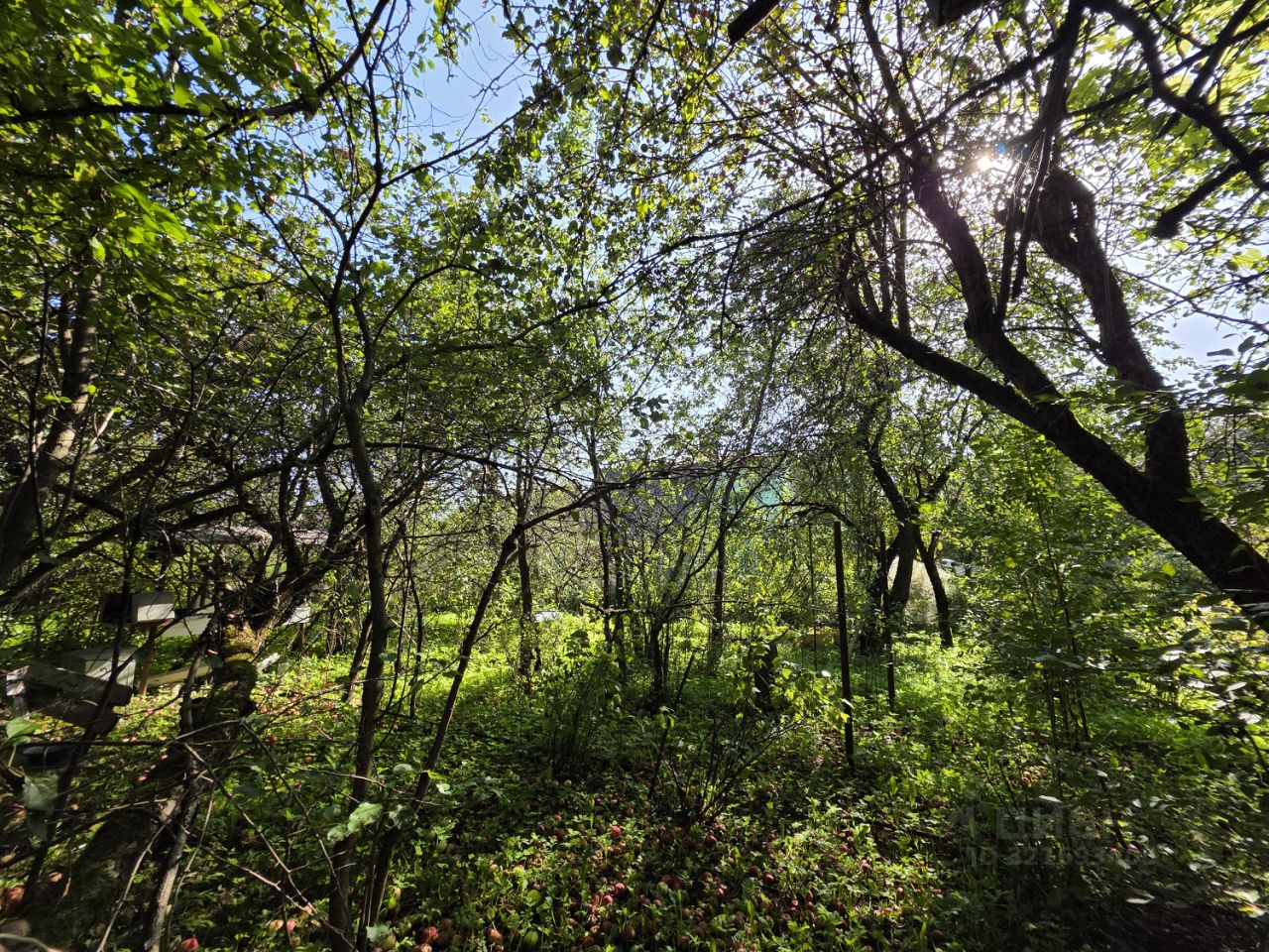 На участке расположен садовый дом 60 м2, гараж, хозяйственный постройки, растут яблони, виноград, ель.