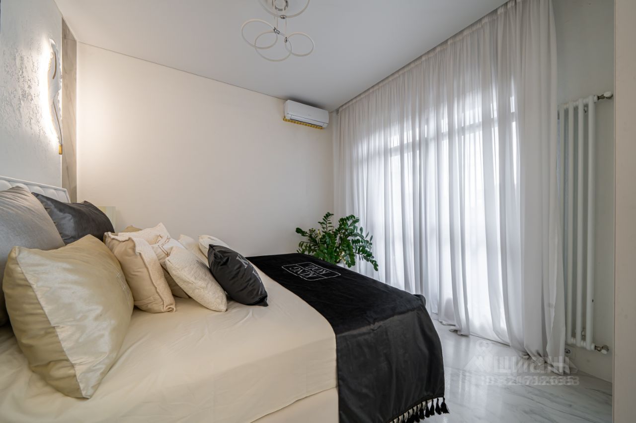 Предлагается квартира с дизайнерской отделкой на 3-ом этаже ЖК бизнес - класса ''Сказка''. Квартира обладает высокими потолками и панорамными окнами. Из кухни и спальни выходы на большой балкон.