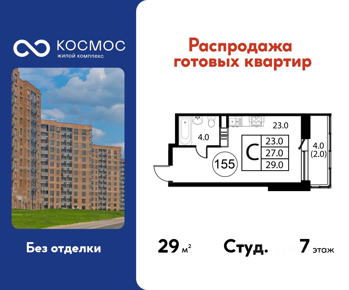 Продаётся студия в сданном доме (Корпус 7), срок сдачи: 2-кв. 2025, общей площадью 29.00 кв.м., на 7 этаже.