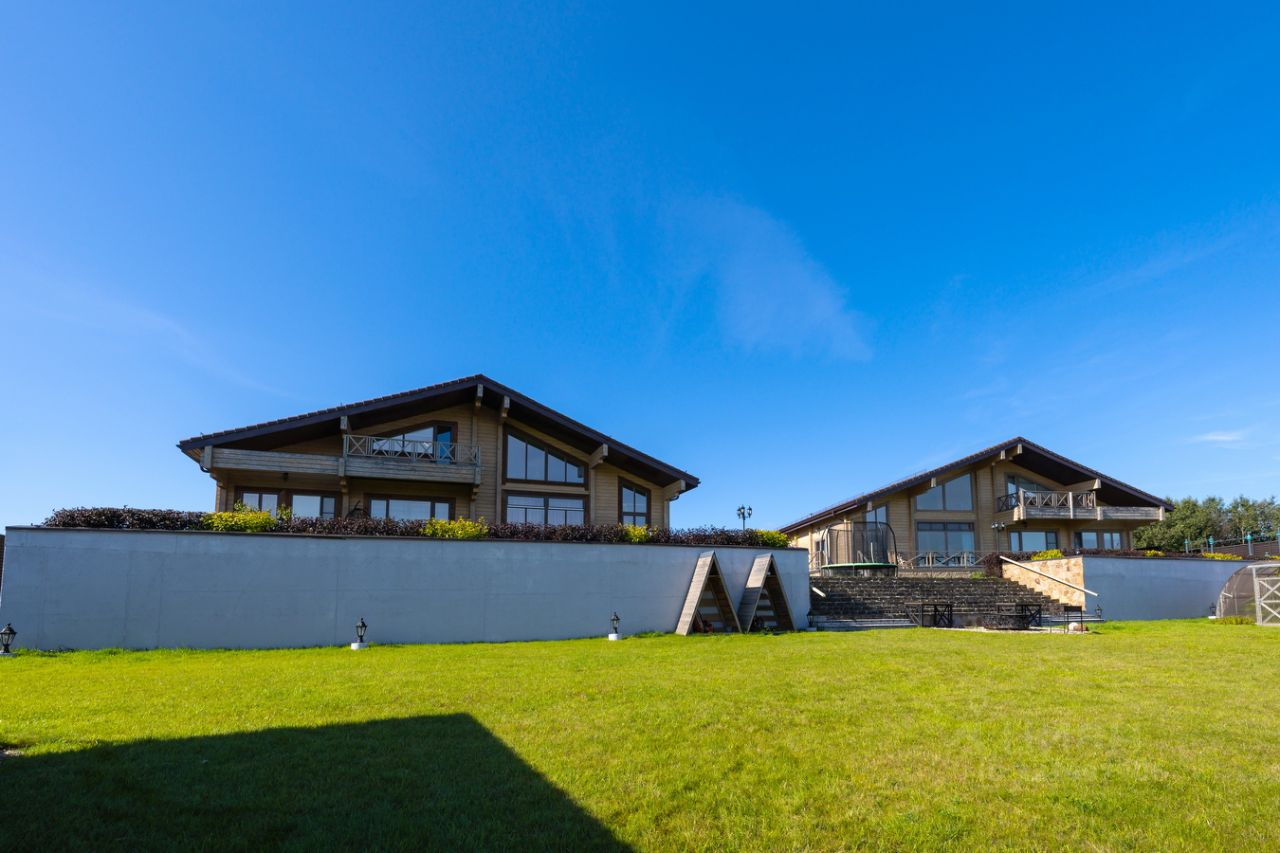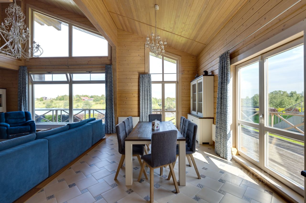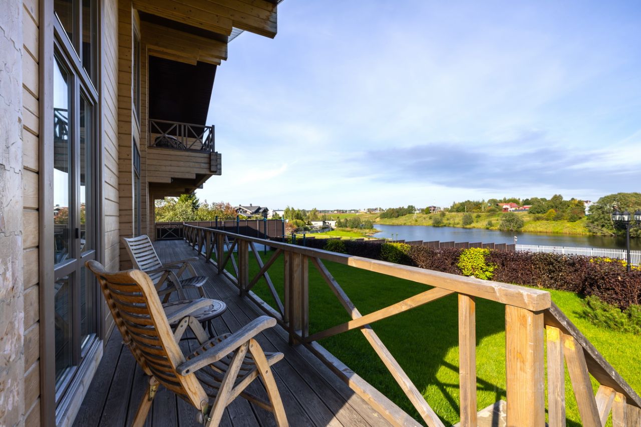 КП Экопарк Ушаково. Продается комплекс из двух коттеджей из клееного бруса 271кв.м. и 280 кв.м. на одной территории. Первая береговая линия реки!!! Потрясающие виды на реку из всех помещений в сочетании со своим выходом с участка к реке создают ощущение приватности, спокойствия и единения с природой!!! Это идеальное место для тех, кто ценит комфорт, природу и качество жизни!!! Прекрасный участок 35 сот. с благоустроенной территорией. На участке расположены: два основных дома, дом для обслуживающего персонала, домик-мастерская, гараж, большая территория для парковки. Каждый из домов имеет прекрасно спланированное пространство: 1 этаж: прихожая с гардеробной зоной, большая гостиная (65 кв.м.) со вторым светом, кухня-столовая, кабинет с видами на реку или сауна, две спальни (18 и 19 кв.м.), санузел с душевой и постирочной зоной. 2 этаж: большой холл, две жилые комнаты (16 и 22 кв.м.), санузел с ванной и душевой. Все коммуникации заведены в дома и подключены: магистральный газ, электричество, скважина, локальные очистные сооружения, сделан глубинный дренаж по всему участку, проведен интернет (оптоволокно), сделано видеонаблюдение. Комплекс находится в строго охраняемом коттеджном поселке, где созданы все условия для комфортной жизни: охраняемая территория, прогулочные зоны, детская и спортивные площадки, свой пляж. В 10 минутах езды расположено Истринское водохранилище - отличное место как для купания, так и для рыбалки. Рядом также имеется все для увлекательного досуга: Королевские Конюшни — новый конноспортивный клуб с крытым манежем и детской школой верховой езды, рыболовно-спортивный центр, сафари-парк, центр водных видов спорта, корты, спортивные площадки, футбольные поля и оборудованные пляжи, Храм Бориса и Глеба (1809-1816 г. г. постройки), а также магазины, рынки и др. Удобный выезд на Новорижское и Волоколамское шоссе.