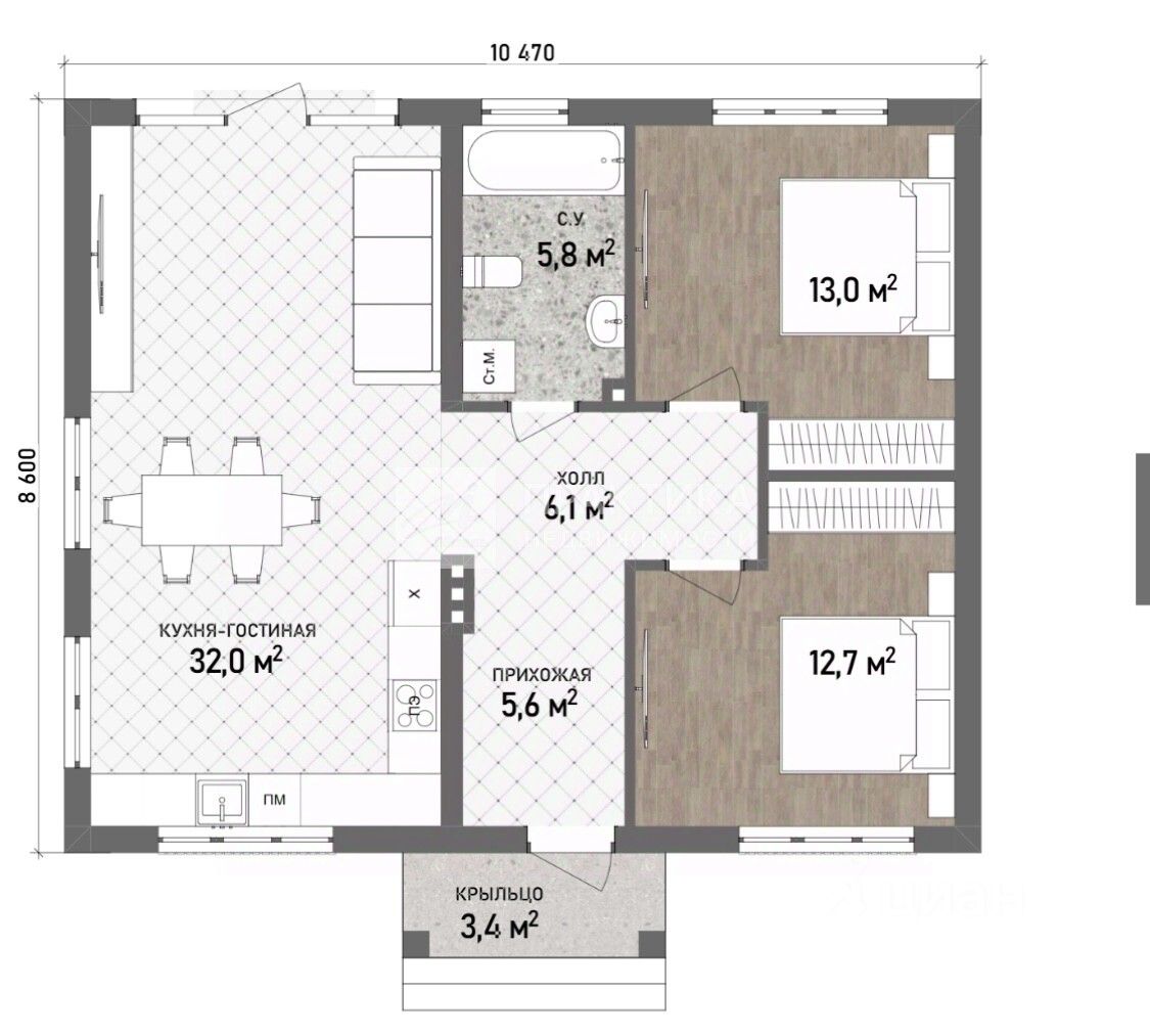 Общая площадь80 м2