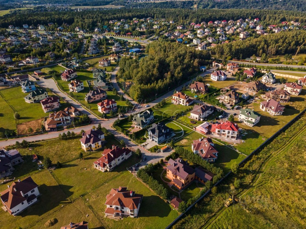 Участок огорожен, высажен газон, есть несколько взрослых деревьев. Подъездная дорога - асфальтирована. Все соседи построены, солидное окружение.