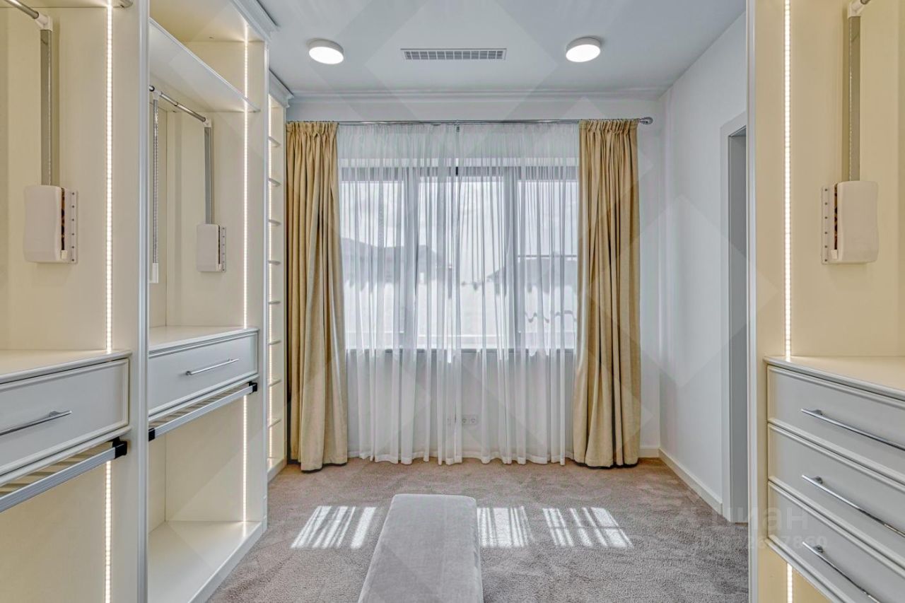 2 этаж: - Хозяйский мастер-блок: спальня, гардероб, санузел, кабинет - Мастер-блок на две спальни с общим гардеробом и санузлом - Отдельный мастер-блок на одну спальню В доме: теплые полы по всему периметру, зональное кондиционирование, электрошторы, камин, видеонаблюдение, генератор, умная система полива. Полный проект с инженерией и ландшафтом - каждый метр под контролем.