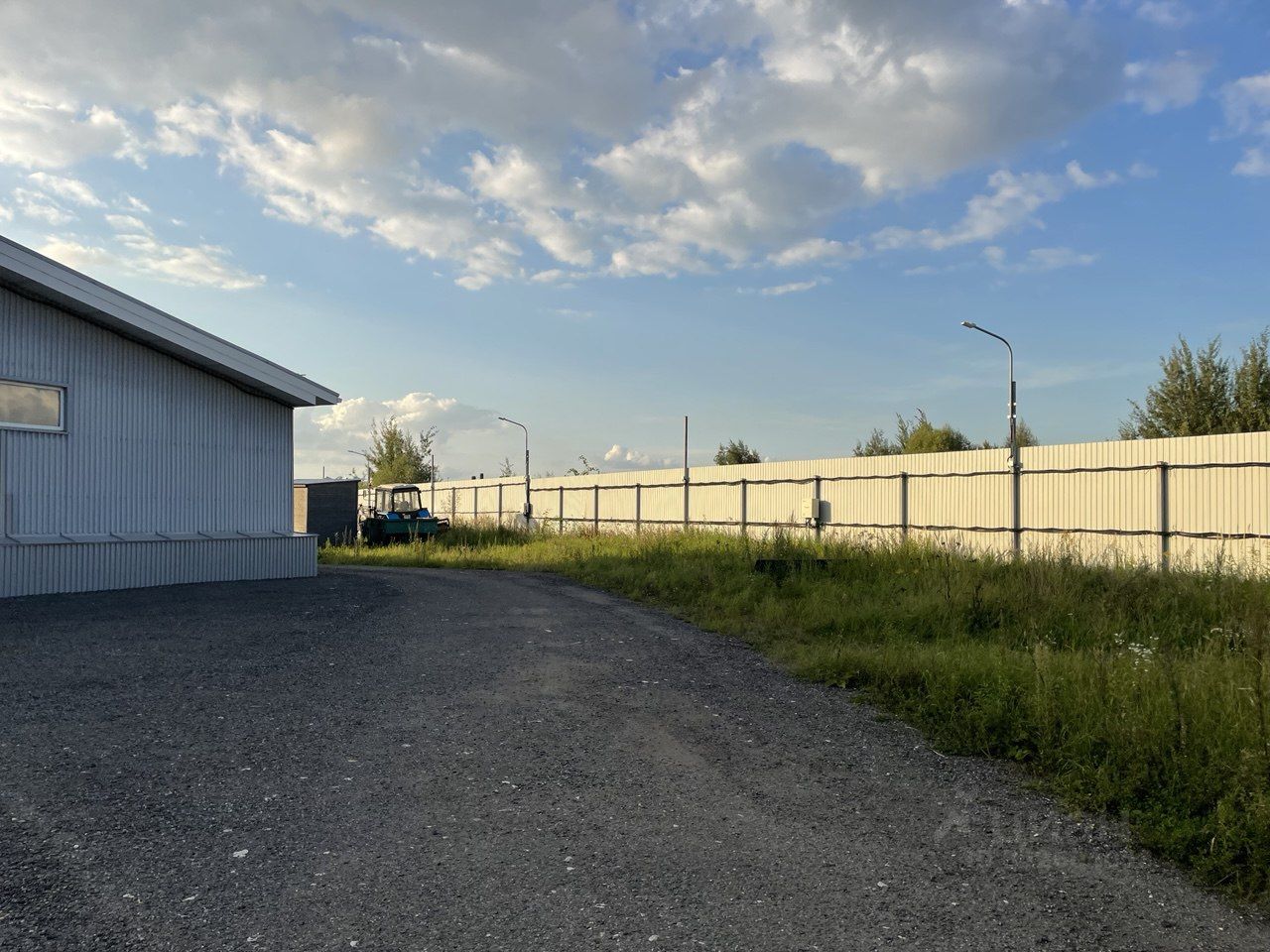 Склад расположен на земельном участке 1,2 га, большая разворотная площадка, место для парковки автомобилей, участок вокруг склада покрыт асфальтовой крошкой.