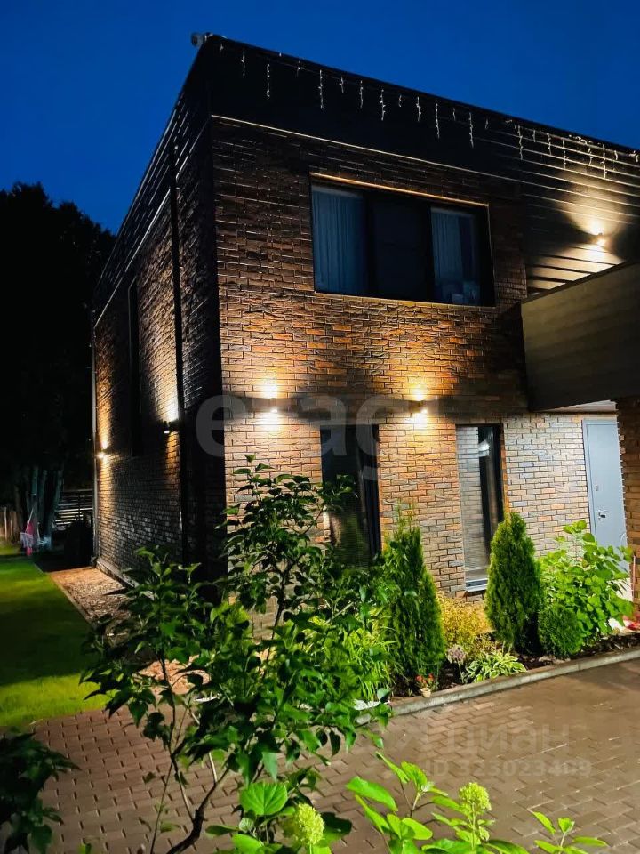 Участок в 10 соток благоустроен: выполнено ландшафтное проектирование с декоративной подсветкой, высажены кустарники и сохранены взрослые деревья, в дальней части обустроена зона барбекю.