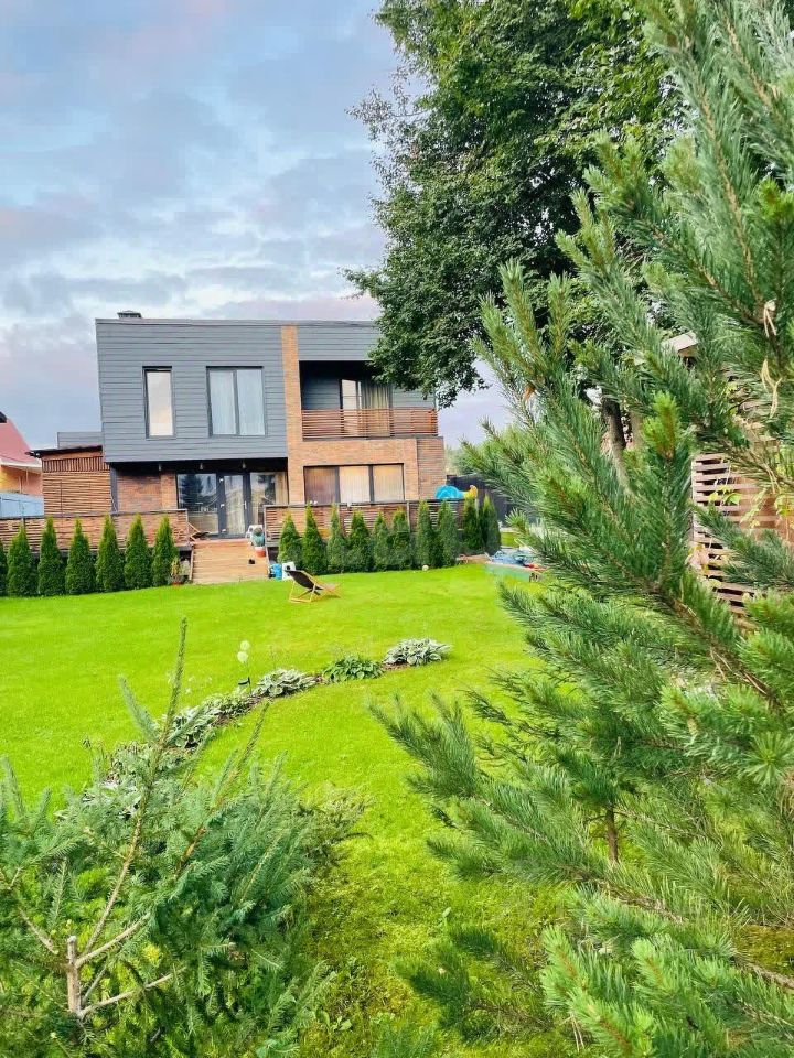 Современный дом площадью 230 кв.м расположен в 25 км от МКАД по Новорижскому шоссе в деревне Падиково.