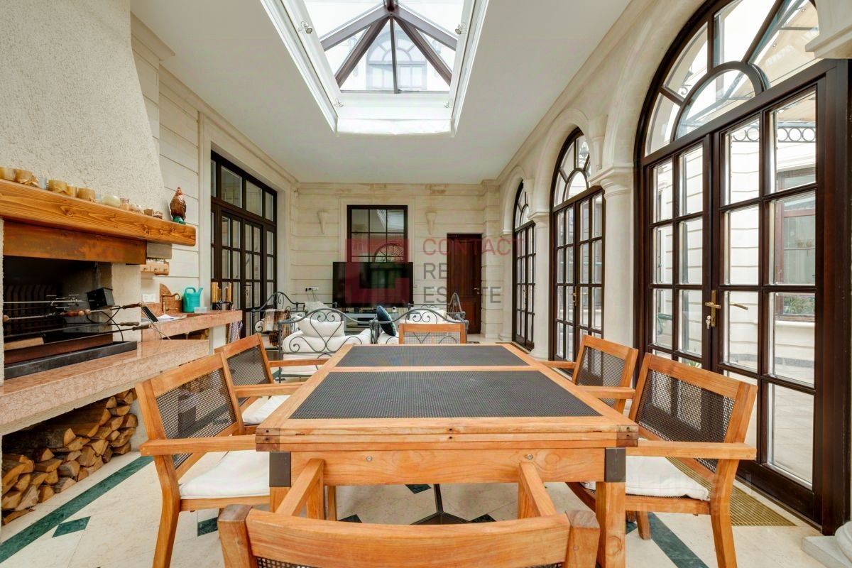 ID 543469. Дом 1250 кв.м в стиле американской классики, сдается впервые! В доме: 2 гостиные с камином, кухня-столовая с выходом в зону гостиной барбекю, рабочая кухня, 4(5) спален, кабинет, SPA-зона: бассейн, хаммам, сауна с русской печью с изразцами, тренажерный зал, домашний кинотеатр, бильярдная, мансардная студия для проживания молодого поколения. На участке 52 сотки помимо основного дома расположены закрытая беседка-барбекю с профессиональной кухней, домик для персонала. Выполнены ландшафтные работы, автополив, фонтанная группа на въезде. Охраняемый коттеджный поселок с пропускной системой. В шаговой доступности инфраструктура Инновационного центра Сколково: кафе, рестораны, медицинская клиника Хадасса Медикал, магазины, аптеки, отель, спортклуб World Class, школа тенниса Сколково, бани, спа-центры и многое другое.