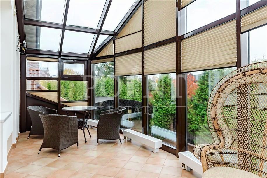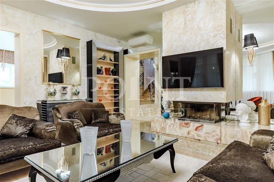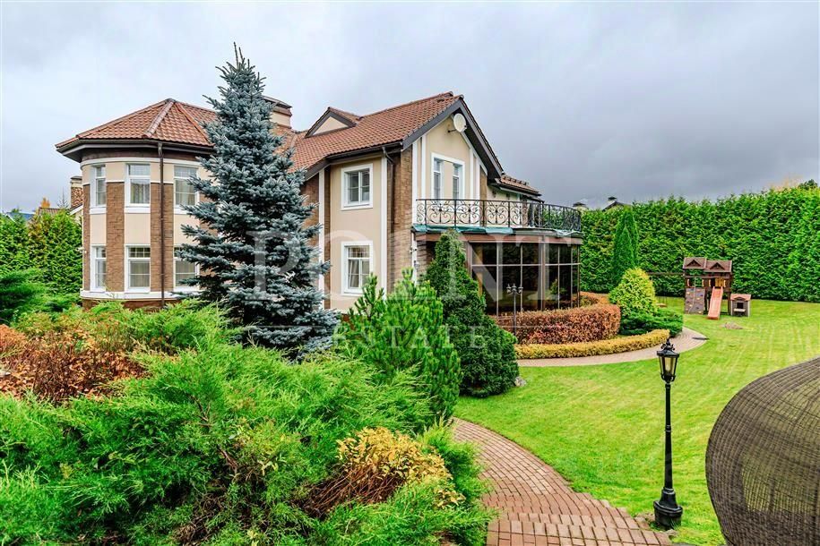 Лот: 114594. К продаже предлагается меблированный двухуровневый коттедж в поселке ''Гринфилд''. Элегантную архитектуру дома подчеркивает колоннада, обрамляющая большую закрытую террасу, что придает особняку торжественный вид. Плавные линии фасада гармонично сочетаются с продуманной планировкой и светлыми просторными помещениями. На первом этаже расположены прихожая, гардеробная, гостевой санузел, гостиная с камином, кухня-столовая с выходом на террасу, зимний сад, тренажерный зал и зона отдыха с сауной. Особенностью гостиной стало панорамное остекление, наполняющее пространство обилием естественного света. На втором этаже находятся три комфортабельные спальни, каждая с индивидуальной гардеробной и ванной комнатой, а также доступ на просторную террасу. Инфраструктура участка включает гостевой дом площадью 200 м2, кованый крытый навес на три автомобиля, продуманный ландшафтный дизайн и систему наружного видео наблюдения по периметру территории. Благоустроенная территория и развитая инфраструктура делают этот дом идеальным решением для комфортной загородной жизни.