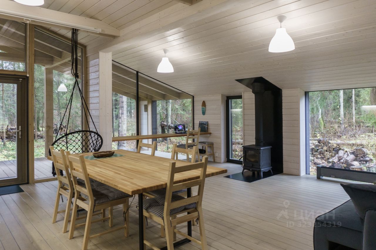 Дом полностью оборудован для жизни: полноценная кухня, современная сантехника, интернет и Smart-TV. Комфорт города в окружении леса. Две просторные спальни, кровати с топовыми матрасами Аскона. Гостиная с камином и панорамным остеклением, которое стирает границы между уютным интерьером и природой. Просторная ванная комната с теплым полом и ванной.