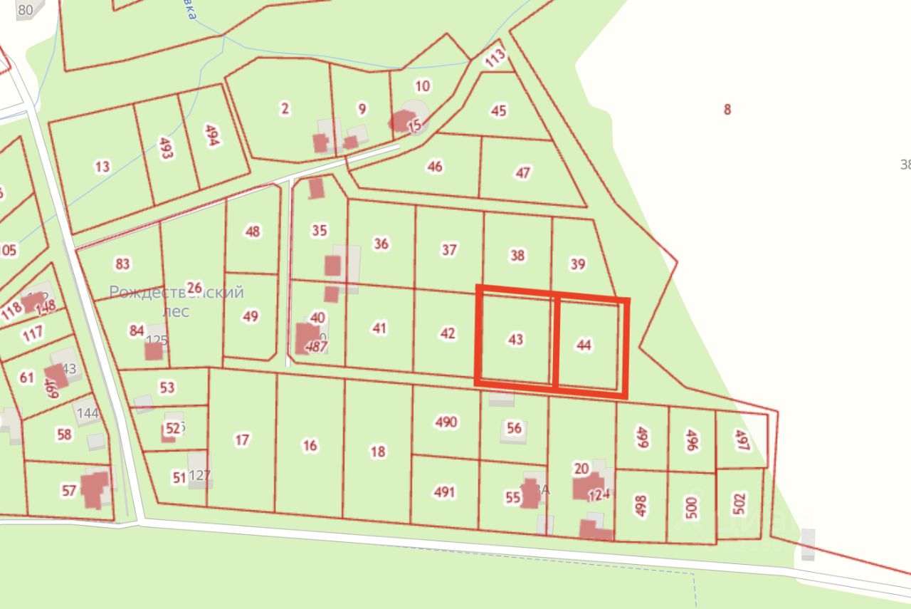 Категория земель: Земли населенных пунктов. Разрешенное использование: Для дачного строительства. Два соседних участка, каждый по 15 соток: 50:04:0160425:44 и 50:04:0160425:43.