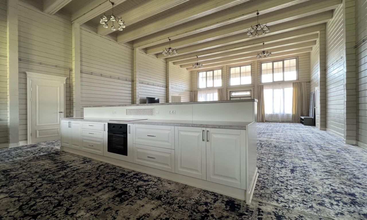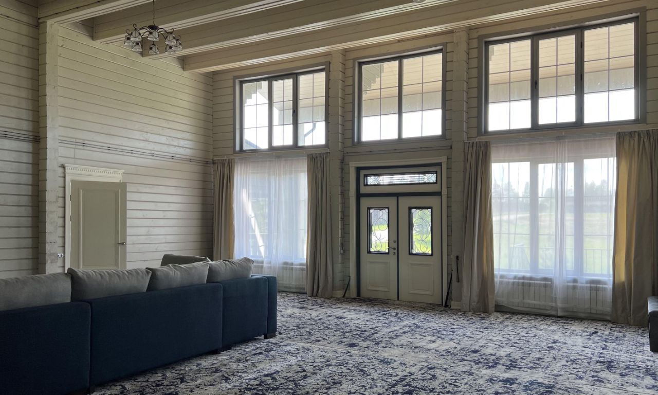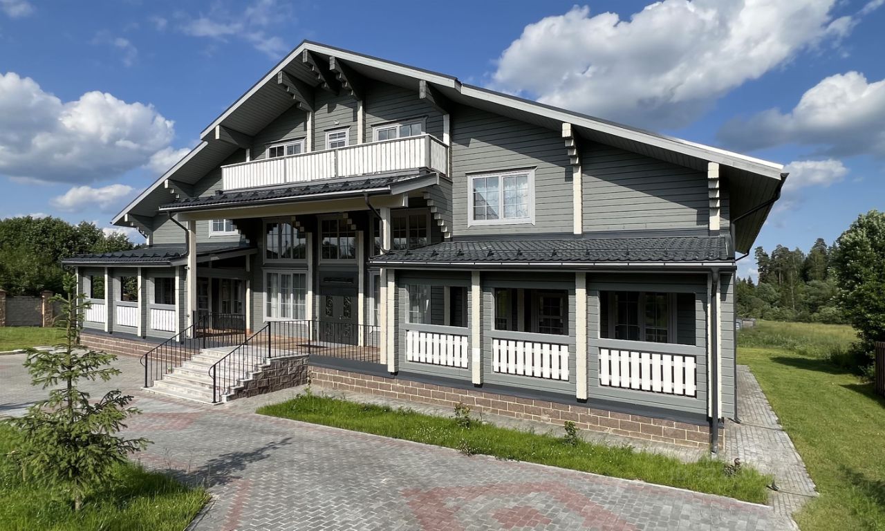 Продается новый двухэтажный жилой дом площадью 650 кв. м. Материал стен дома клееный брус с сечением 200 на 180 мм. В доме 6 спален, 7 санузлов, две большие террасы с противоположных сторон дома, а также огромные гостевые пространства на обоих этажах. Высота потолка в гостиной первого этажа 5.5 м. Здесь много света и воздуха. На первом этаже расположились: огромное единое пространство гостиной с вторым светом 127 кв. м, где также находится кухня с островом - барной стойкой, 2 спальни по 50 кв. м, 2 спальни по 35 кв. м, и гардеробная 14 кв. м, в каждой спальне свой санузел с душевой кабиной, На втором этаже: огромный холл 127 кв.
