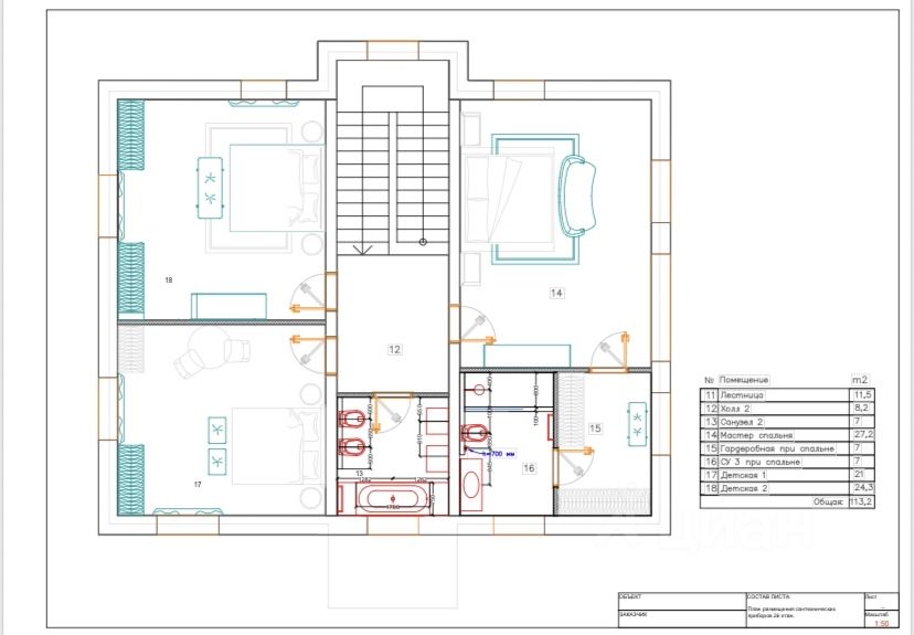2эт.: мастер-спальня со своим с/у и гардеробной комнатой, ещё две спальни, с/у