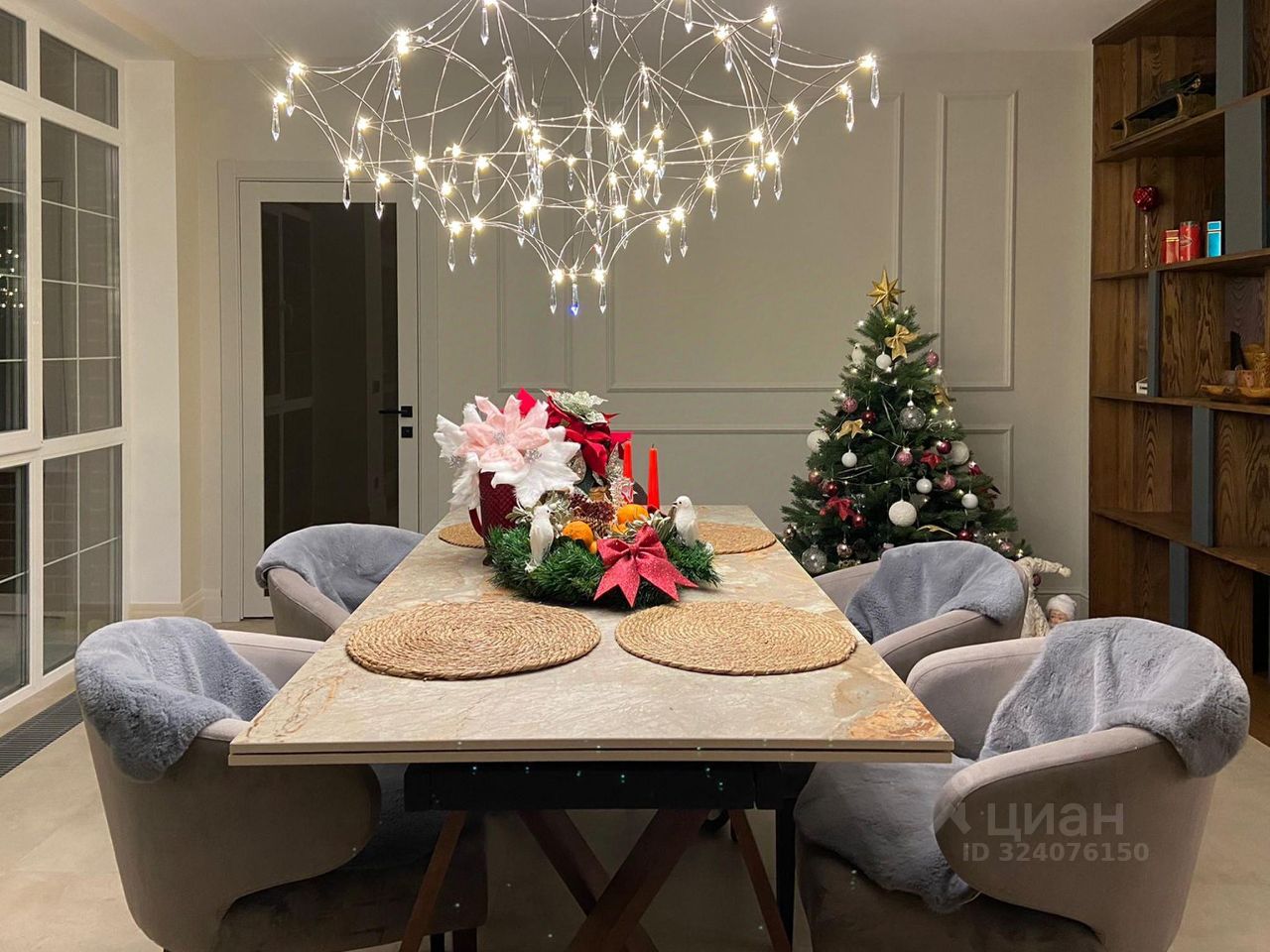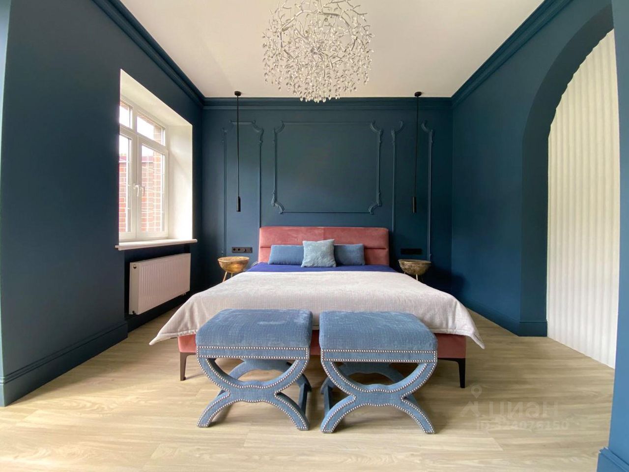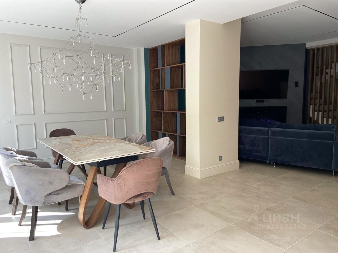 Особое внимание заслуживает лестница из натурального дуба с увеличенной площадкой под 90 градусов, декоративные панели так же выполнены из натурального дуба под заказ. Все двери в доме нестандартной высоты 2,4 м, что добавляет особую атмосферу пространства.