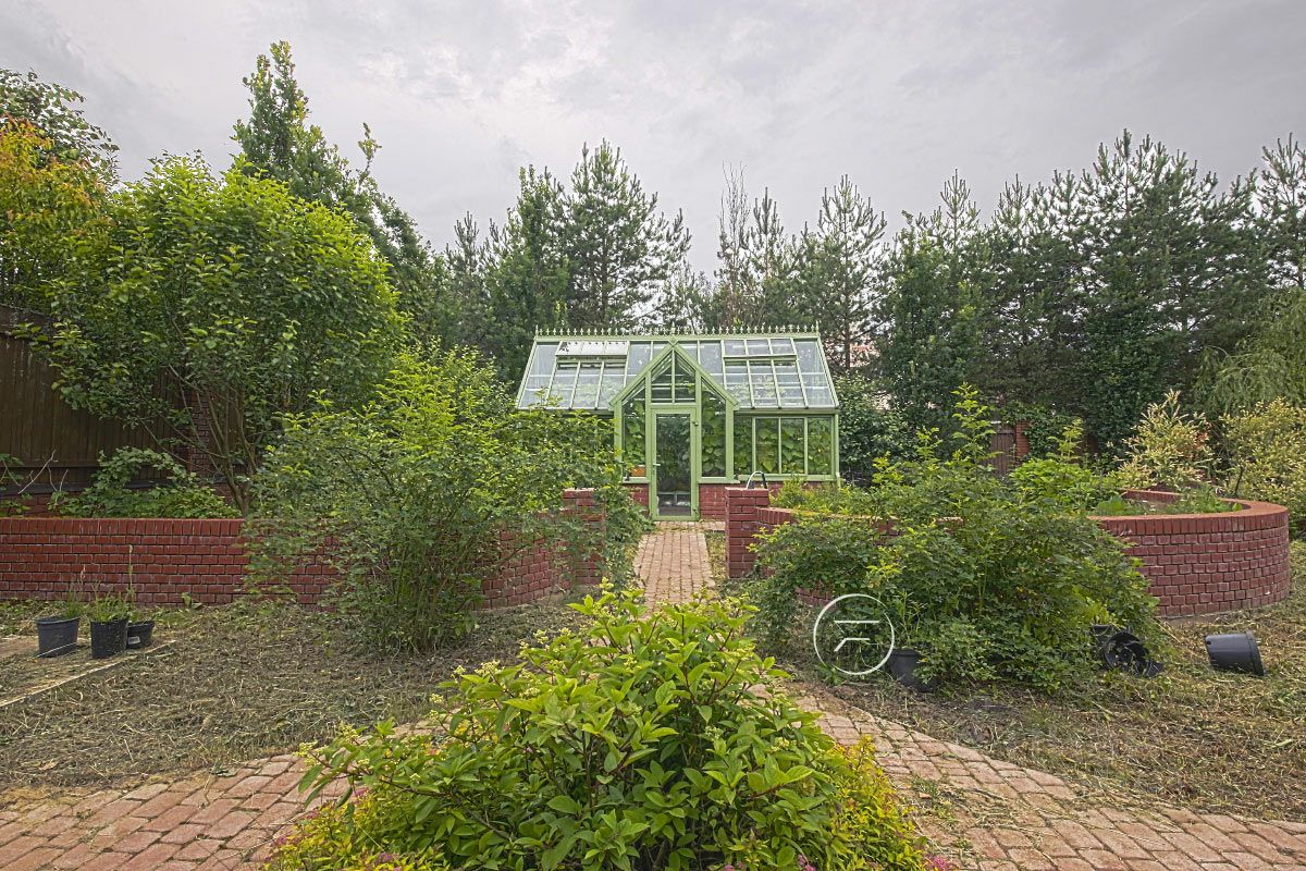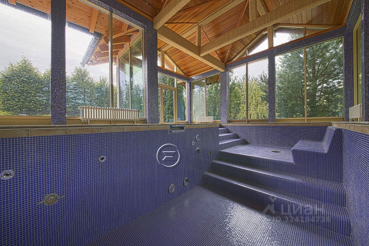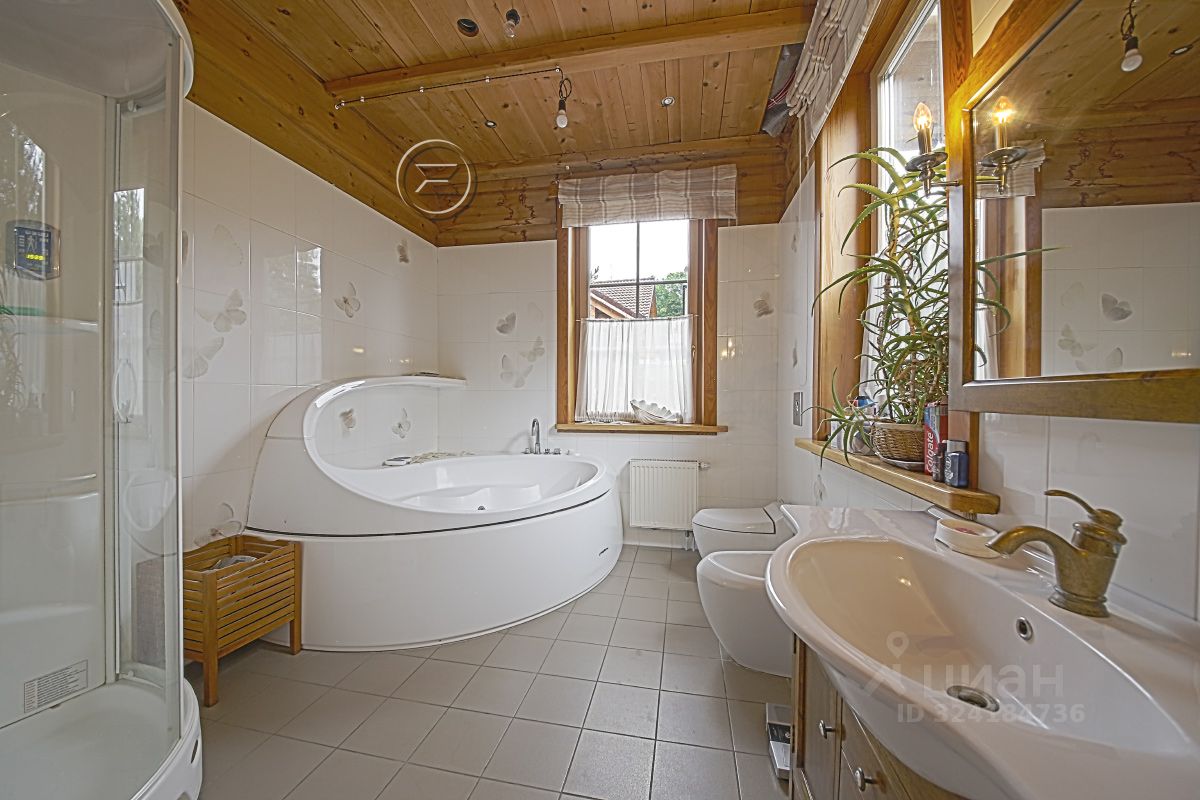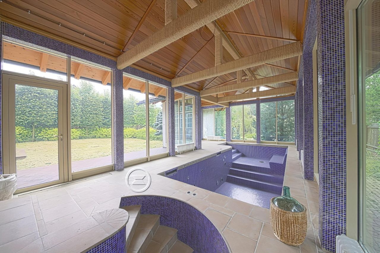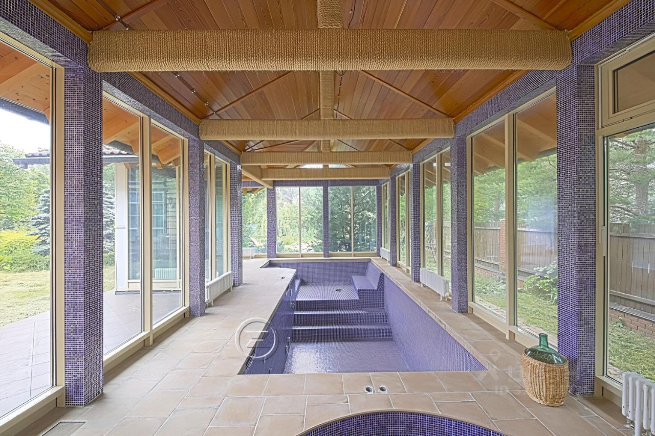 Площадь дома 394 кв.м + гараж 153 кв.м., с жилым этажом (для гостей или персонала) и подвалом. Дом жилой, для ПМЖ, можно прописываться и проживать круглогодично. В доме 5 изолированных спален. Кабинет с отдельным выходом во двор. Гостиная 52 кв.м. с камином и вторым светом. Высота потолков 6 метров. 4 сан. узла. Гардеробная комната. Кухня 22 кв.м. Столовая 22,5 кв.м. с выходом на террасу. Отдельный корпус с панорамными окнами с бассейном с противотоком (регулируемое течение по ширине всего бассейна) и гидромассажем, Комната (20 кв.м) для беговых дорожек, с панорамным окном, Спортивный зал с душевой, Терраса с видом на внутренний двор с садом, Патио под навесом с инфракрасным обогревом,
