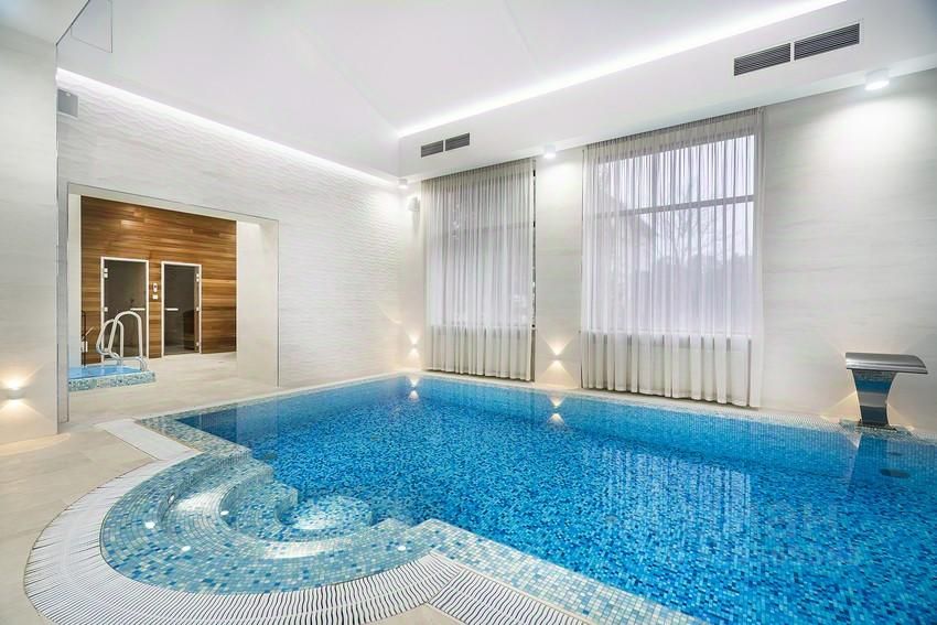 Просторный четырехэтажный особняк создан по оригинальному проекту, авторы которого предусмотрели все необходимое. Хозяева смогут почувствовать себя в настоящем дворце, оборудованном по последнему слову техники: здесь есть собственный лифт и большой бассейн, а также удобный гараж на два машиноместа. Благодаря большим окнам необычной формы в доме всегда много воздуха. В светлых спальнях будет уютно как самим хозяевам, так и их гостям