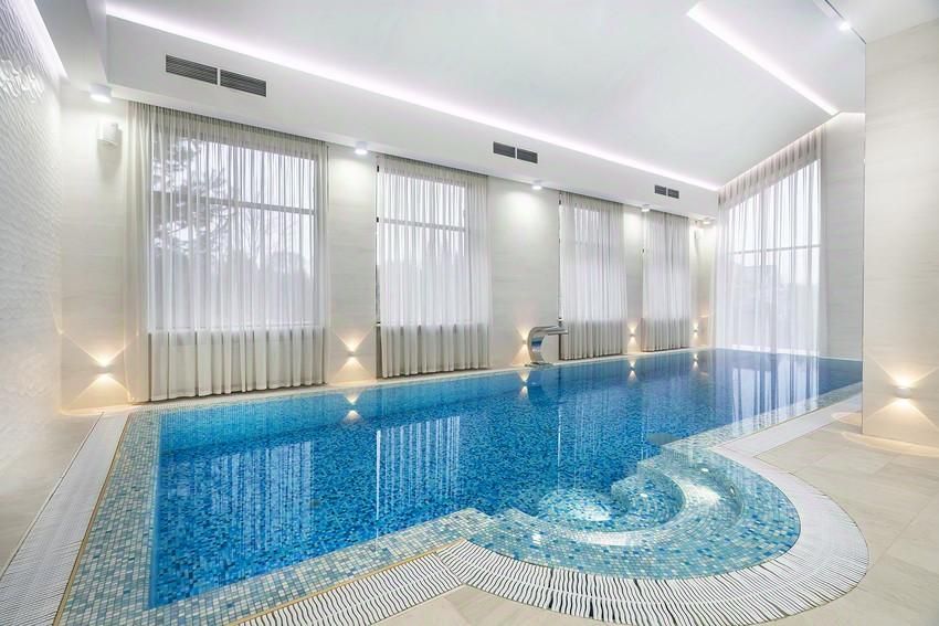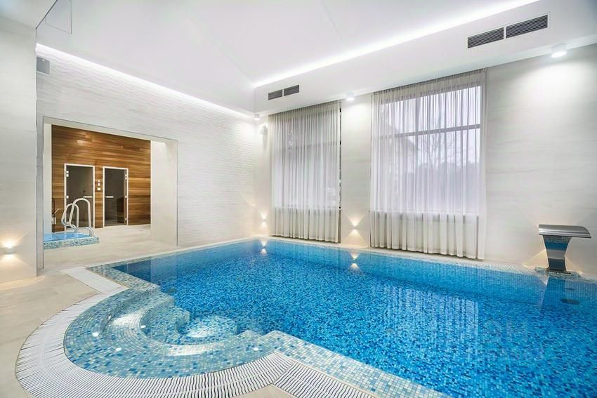 Просторный четырехэтажный особняк создан по оригинальному проекту, авторы которого предусмотрели все необходимое. Хозяева смогут почувствовать себя в настоящем дворце, оборудованном по последнему слову техники: здесь есть собственный лифт и большой бассейн, а также удобный гараж на два машиноместа. Благодаря большим окнам необычной формы в доме всегда много воздуха. В светлых спальнях будет уютно как самим хозяевам, так и их гостям