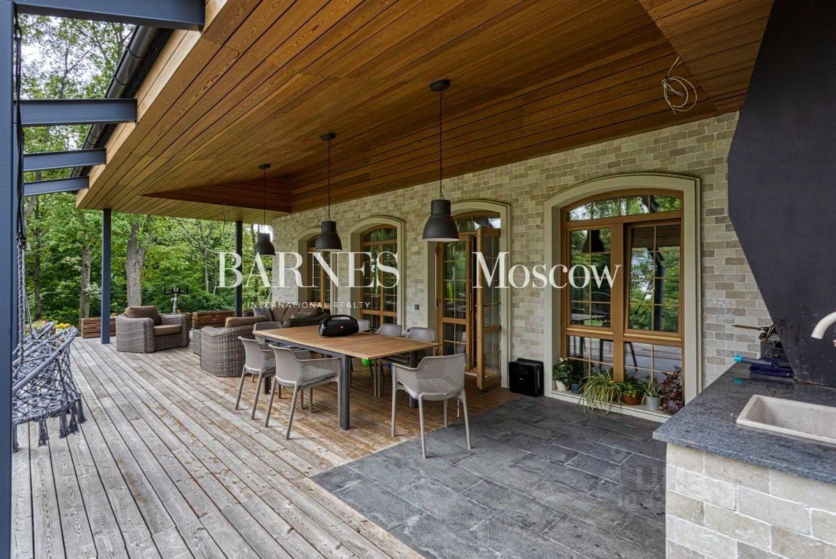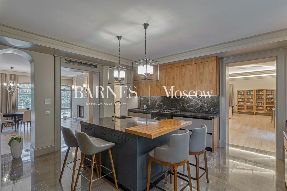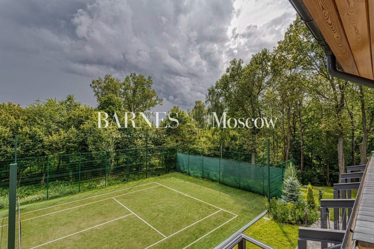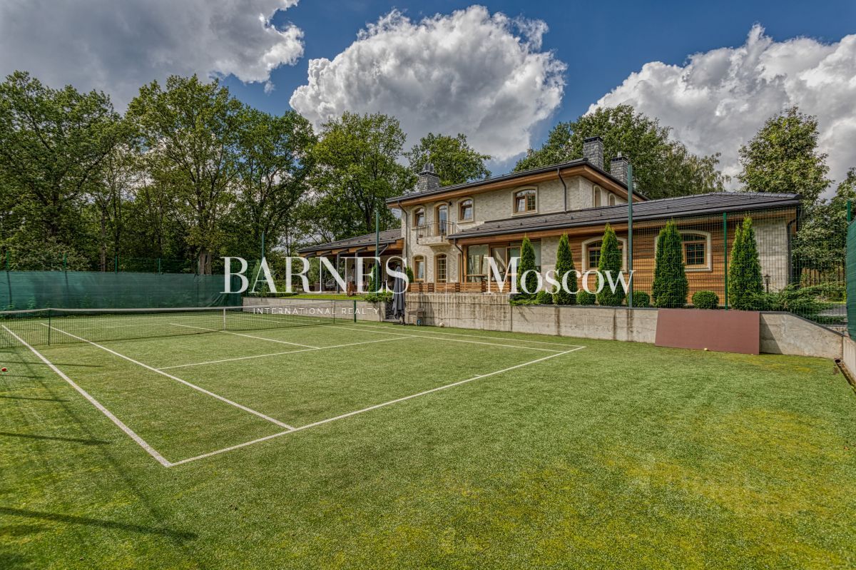 Дом находится в экологически чистой зоне — в густом лесном массиве, гарантирующем: абсолютную тишину и звукоизоляцию от городской суеты, кристально чистый воздух, насыщенный фитонцидами, приватность и безопасность территории. Особая ценность локации — непосредственный выход к берегу реки Истра. Это открывает широкие возможности для: неспешных прогулок вдоль воды, любительской рыбалки, пикников и отдыха у воды в любое время года. В шаговой доступности — знаменитый горнолыжный клуб ''Лужки''. Зимой здесь доступны первоклассные трассы для катания, а в тёплое время года — маршруты для трекинга и велопрогулок. Инфраструктура участка Приватная территория оформлена с учётом высочайших стандартов комфорта и эстетики: персональный теннисный корт — идеальное пространство для спортивных тренировок, зона барбекю с продуманной эргономикой для дружеских встреч на открытом воздухе, просторная терраса, предназначенная для приёмов и отдыха в кругу близких. Качество исполнения В отделке и оснащении дома использованы материалы и оборудование премиального сегмента: сантехника Imperial — эталон британского качества и дизайна, кухонная техника Smeg — сочетание функциональности и эстетики, мебель Devon & Devon — воплощение английской классики и утончённого стиля, климатические системы Mitsubishi — гарантия комфортного микроклимата в любое время года. Планировочное решение Дом спроектирован с учётом потребностей современной семьи: просторные общественные зоны сочетаются с приватными пространствами для отдыха. Первый этаж: парадный холл — визитная карточка дома, гостиная с панорамным остеклением и естественным освещением, кухня, оснащённая по последнему слову техники, столовая с камином — центр семейных собраний, гостевой блок: две спальни и санузел, функциональная постирочная, большая терраса, интегрированная в жилое пространство. Второй этаж: мастерспальня с индивидуальной ванной комнатой и выходом на балкон, две дополнительные спальни, каждая с собственным санузлом. Цокольный этаж: свободное пространство с подготовленными инженерными выводами для обустройства SPAзоны (сауна, хаммам), помещение для отдыха, которое можно адаптировать под личные потребности.