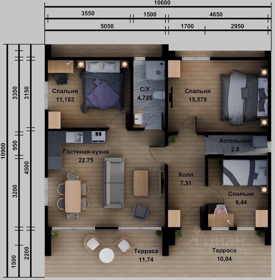 Общая площадь115 м2