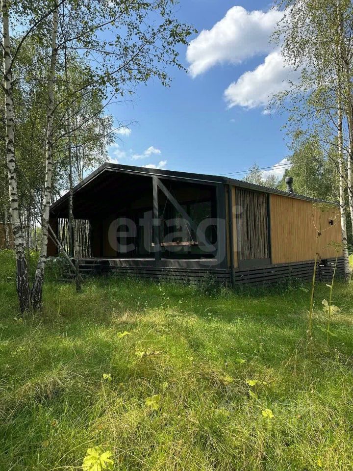 Планировка функциональна и включает просторную общую зону с раскладным диваном и панорамным остеклением, отдельную большую парную и две компактные комнаты, конфигурацию которых можно адаптировать под конкретные задачи. Кухонная зона в настоящее время не оборудована, что позволяет новому владельцу установить модуль по своему вкусу и бюджету. Дополняет дом большая веранда для отдыха на свежем воздухе.
