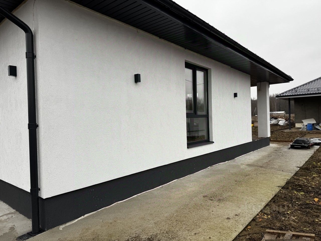 Гараж и электрические ворота уже стоят — не придётся думать, где хранить инструменты и зимнюю резину. Дом сдан без отделки: вы получаете чистый холст, где сами выбираете, где будет кухня-остров, а где — каминный уголок. После ремонта — заезжайте и живите.