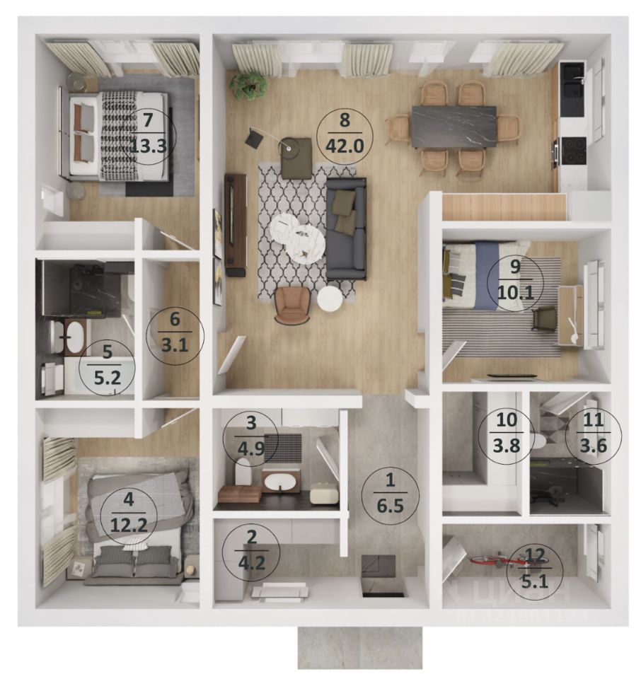 Дом вашей мечты: Площадь: 114 м². идеально подходит для круглогодичного проживания. ПЛАНИРОВКА ДОМА: Продуманная и функциональная. - Прихожая, гардеробная, 2 санузла, 3 спальни, шикарная кухня-гостиная