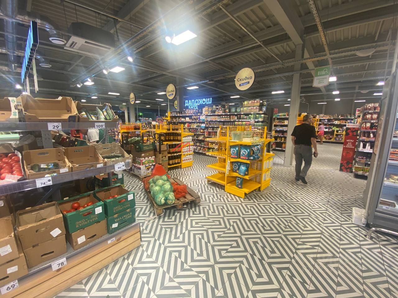 2. Торговая галерея: цветы, мясо, вина, пиво, аптека, пункт выдачи ''Ozon''.