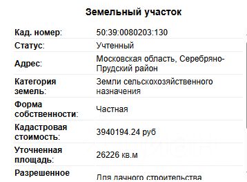 Земельный участок площадью 262,26 сотки расположен в округе Серебряные Пруды Московской области. Объект обладает значительным инвестиционным и утилитарным потенциалом благодаря удачному местоположению, транспортной доступности и живописным ландшафтам.