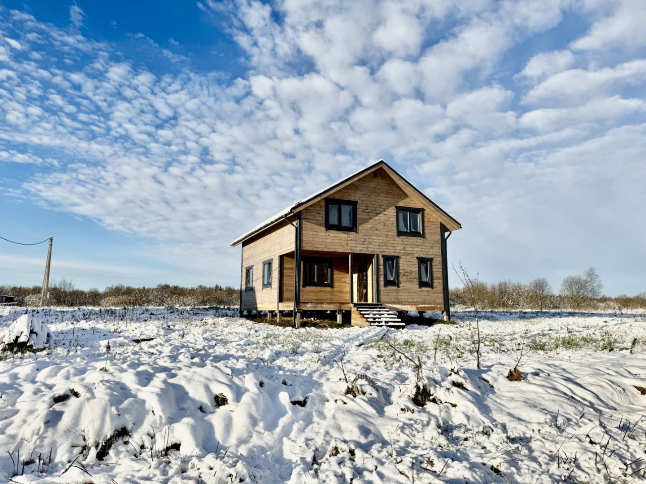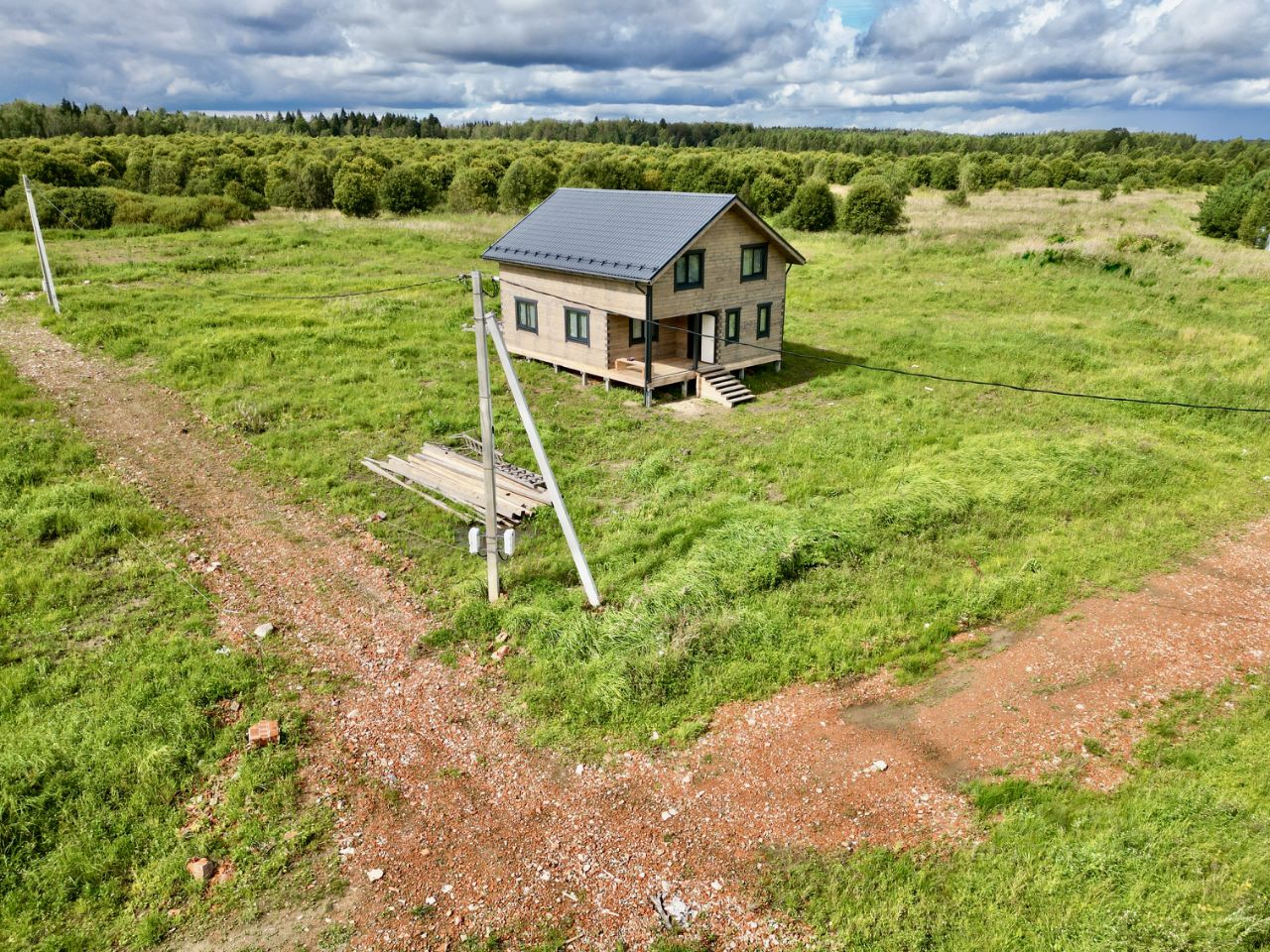 Дом расположен на возвышенности с панорамным видом в окружении леса.