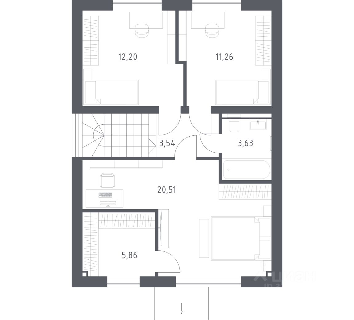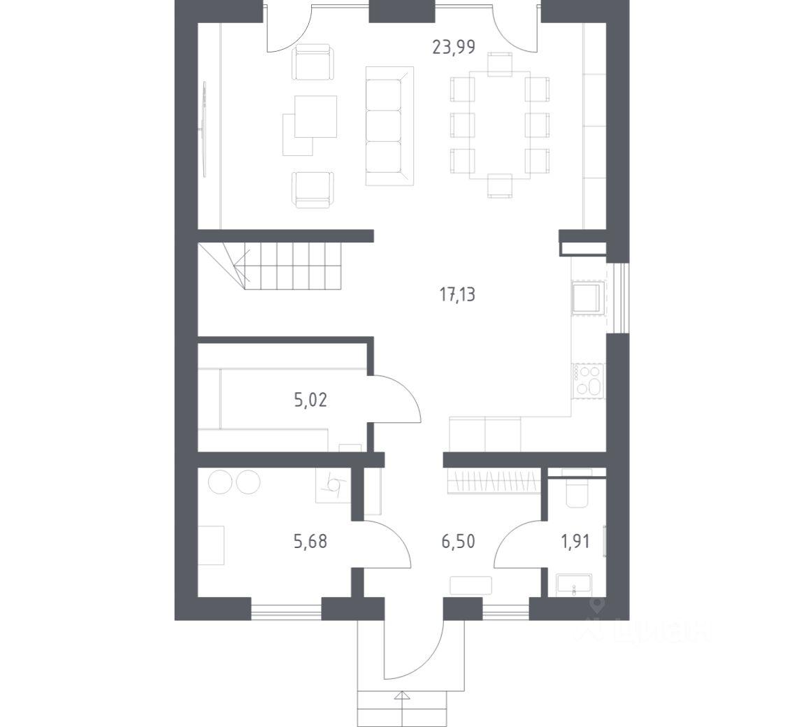 В базовую комплектацию включена металлическая входная дверь, двухкамерные стеклопакеты. Отсутствие межкомнатных перегородок позволит вам адаптировать пространство под себя.