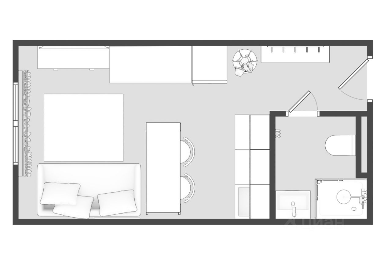 Внутри студии уже установлены: входная дверь с зеркалом, перегородка санузла, разведены мокрые точки и канализация (см. планировку), фурнитура-итальянская.