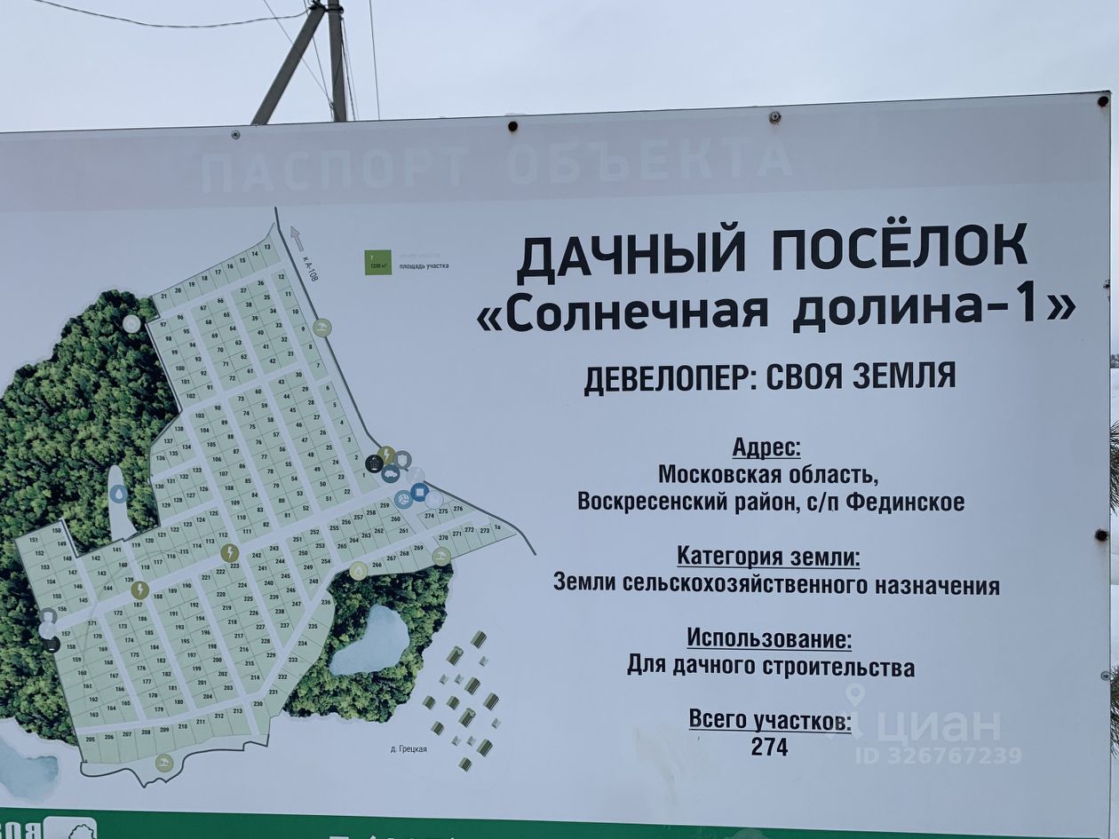 Арт. 129927360 Продаем земельный участок площадью 6 соток (+ еще 6 соток), расположенный с/п Фединское, тер. ''Солнечная долина'' города Воскресенска Московской области.