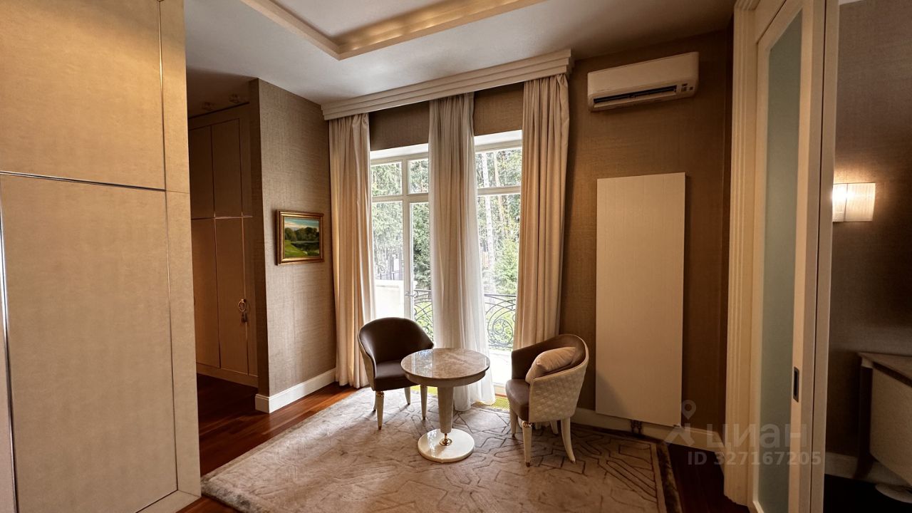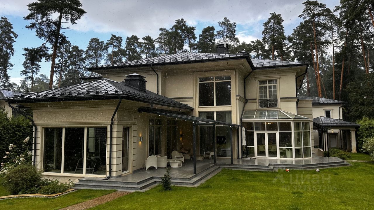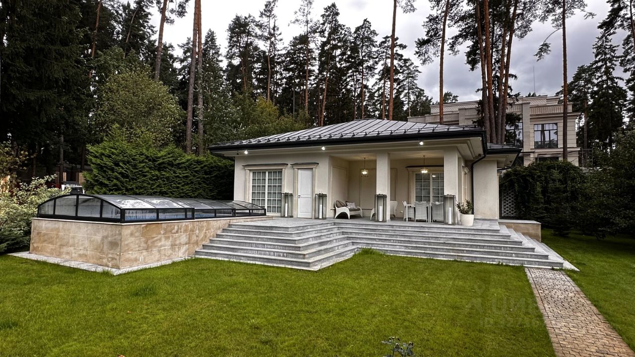 ОПИСАНИЕ: Загородная резиденция площадью 860 м² расположена на лесном участке 25 соток. Светлый фасад выполнен в неоклассическом стиле, облицован штукатуркой и декорирован колоннами, рустовкой и коваными элементами. Современный интерьер оформлен в молочно-кремовых оттенках. Планировка дома включает 6 спален, большую гостиную с камином, роялем и вторым светом, кухню, столовую, тренажерный зал, бильярдную и домашний кинотеатр. Расслабиться в конце дня можно в спа-зоне с бассейном, сауной и хаммамом в доме или в отдельной русской бане на участке с купелью, душевой, кухней и террасой, где рядом расположен подогреваемый открытый бассейн. На территории с ландшафтным дизайном построен гараж на две машины с квартирой для персонала.