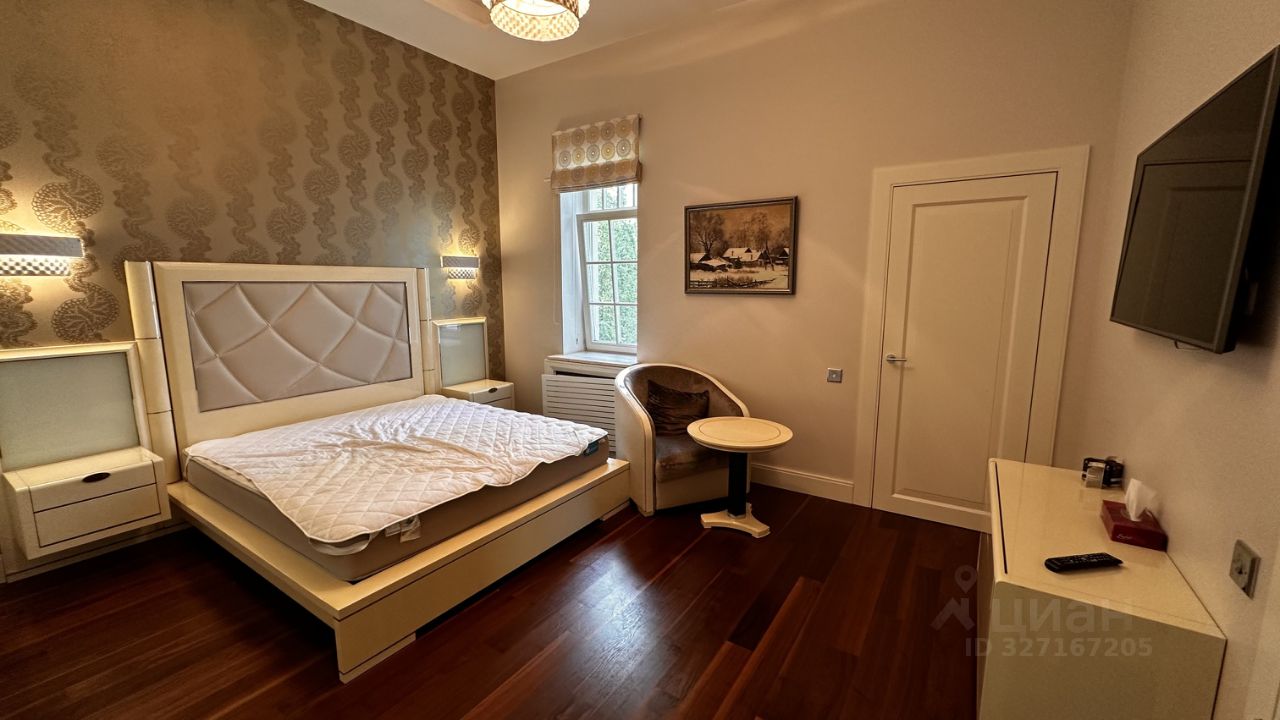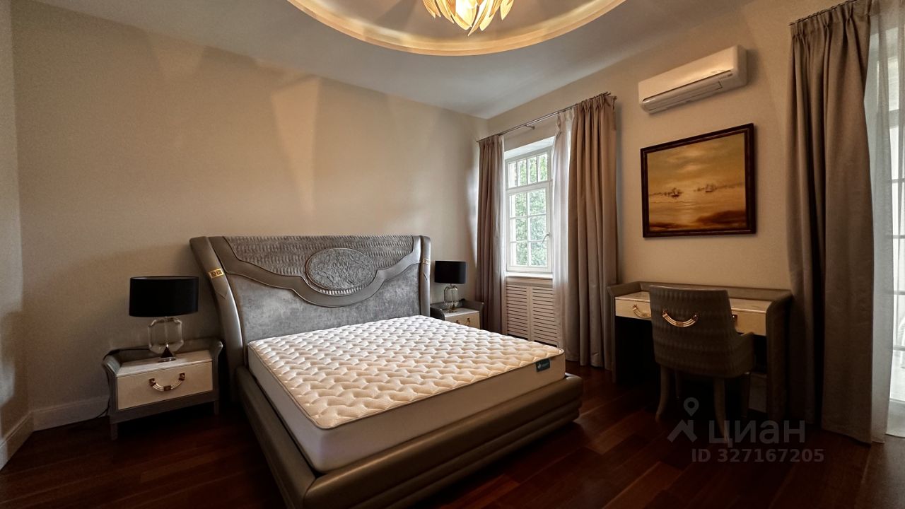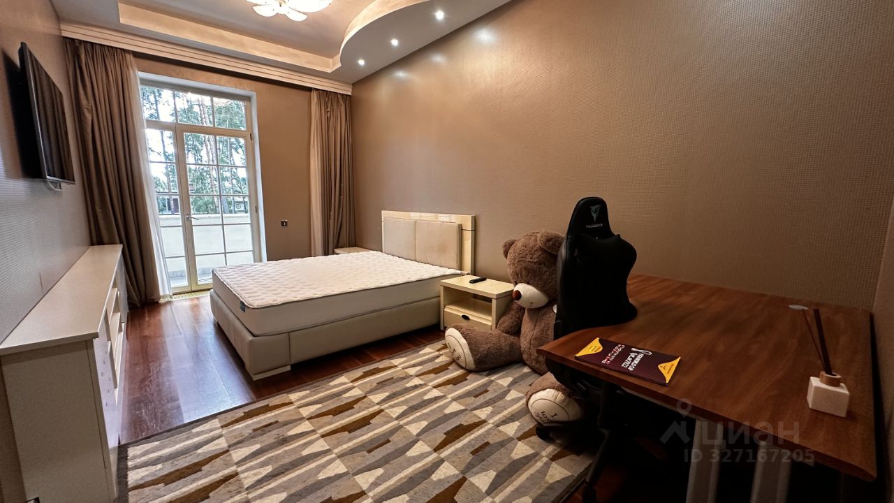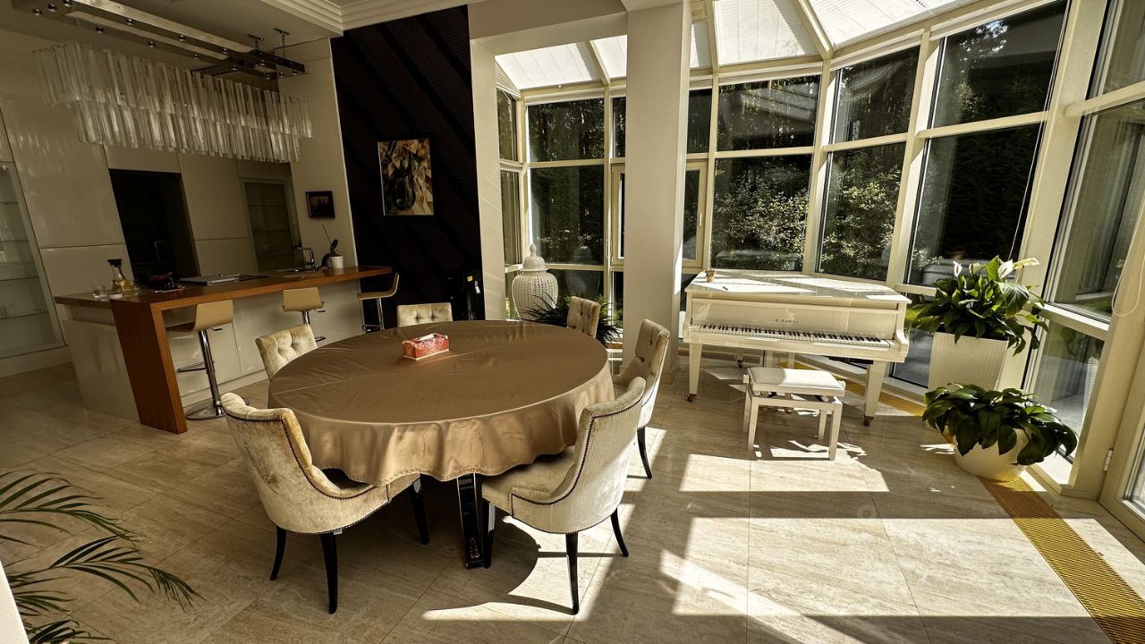 ОПИСАНИЕ: Загородная резиденция площадью 860 м² расположена на лесном участке 25 соток. Светлый фасад выполнен в неоклассическом стиле, облицован штукатуркой и декорирован колоннами, рустовкой и коваными элементами. Современный интерьер оформлен в молочно-кремовых оттенках. Планировка дома включает 6 спален, большую гостиную с камином, роялем и вторым светом, кухню, столовую, тренажерный зал, бильярдную и домашний кинотеатр. Расслабиться в конце дня можно в спа-зоне с бассейном, сауной и хаммамом в доме или в отдельной русской бане на участке с купелью, душевой, кухней и террасой, где рядом расположен подогреваемый открытый бассейн. На территории с ландшафтным дизайном построен гараж на две машины с квартирой для персонала.