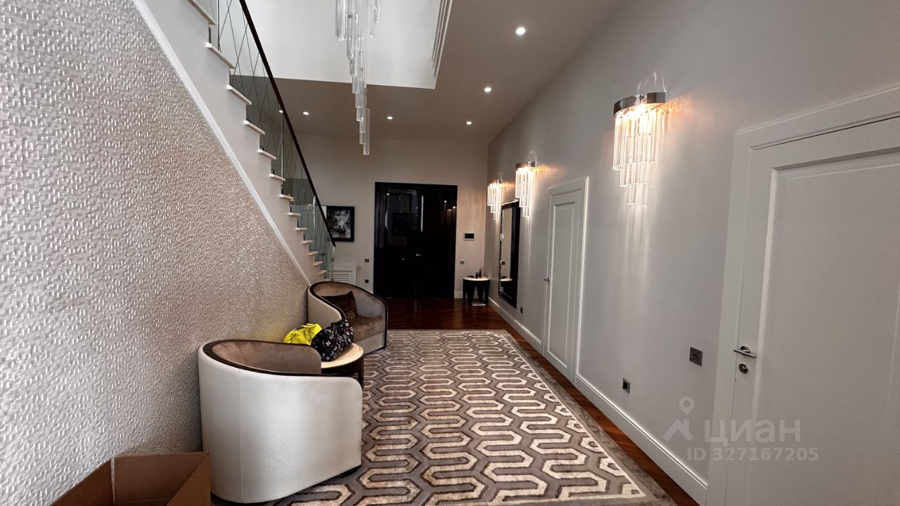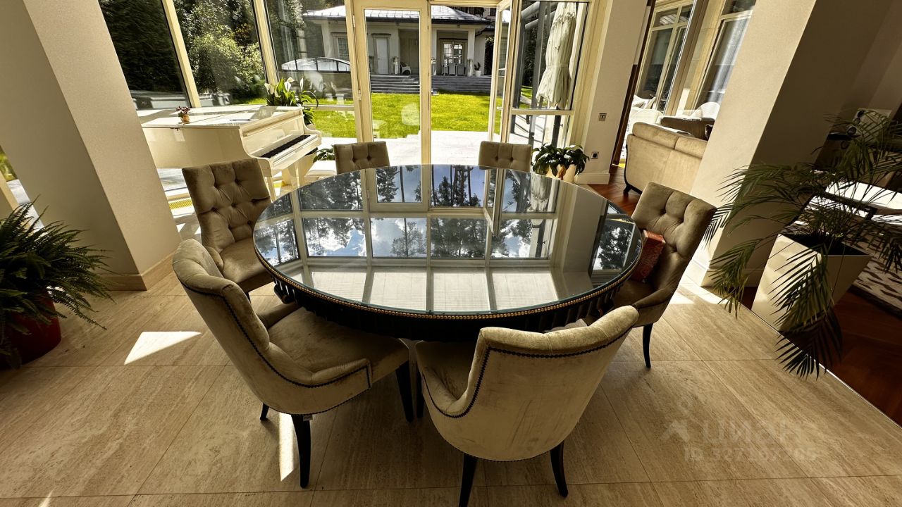 ОПИСАНИЕ: Загородная резиденция площадью 860 м² расположена на лесном участке 25 соток. Светлый фасад выполнен в неоклассическом стиле, облицован штукатуркой и декорирован колоннами, рустовкой и коваными элементами. Современный интерьер оформлен в молочно-кремовых оттенках. Планировка дома включает 6 спален, большую гостиную с камином, роялем и вторым светом, кухню, столовую, тренажерный зал, бильярдную и домашний кинотеатр.