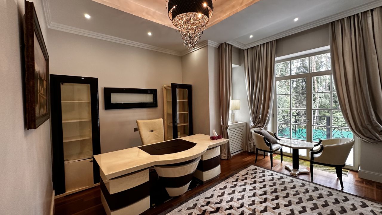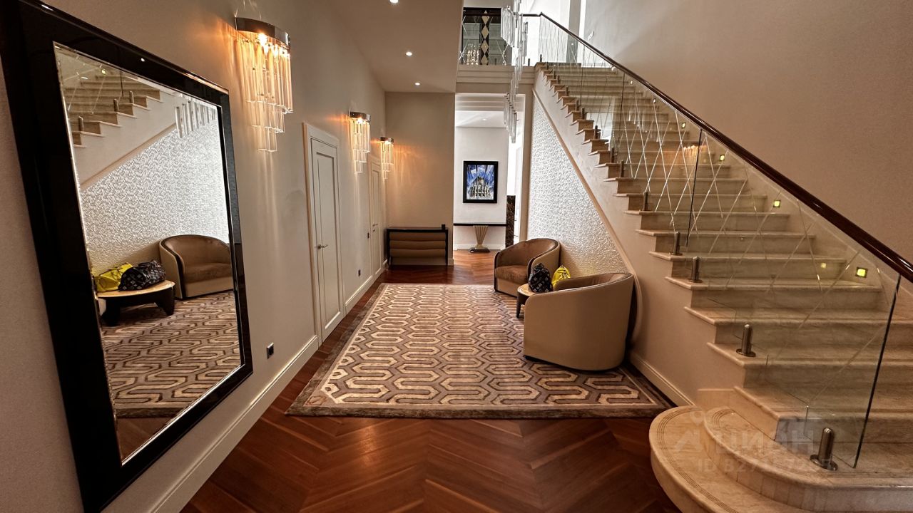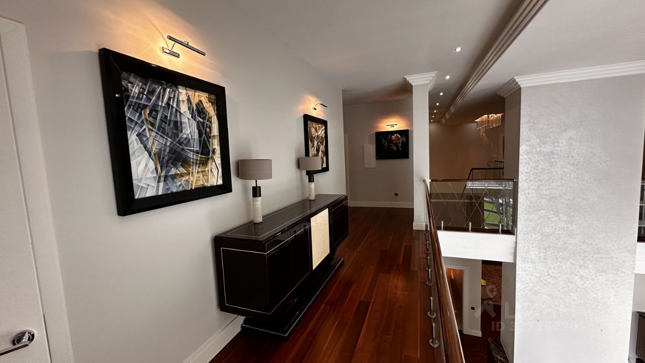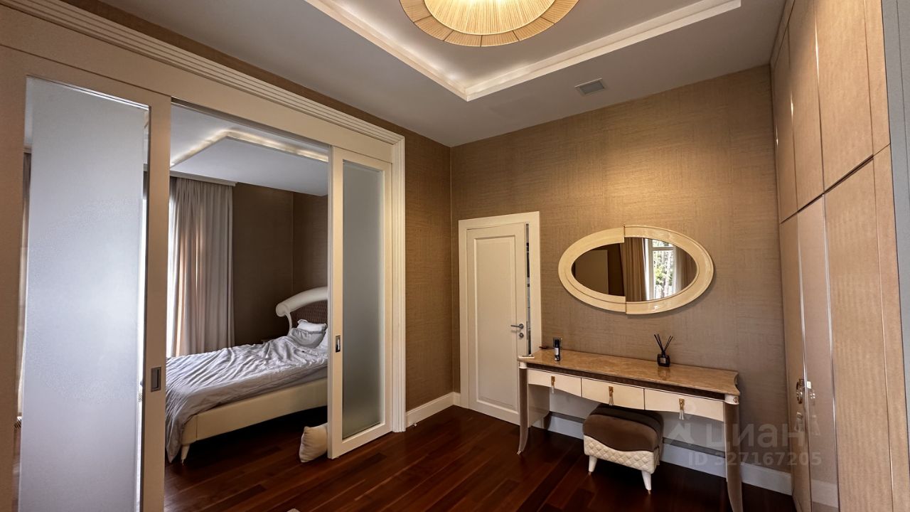 ПОЭТАЖНОЕ ОПИСАНИЕ: Цоколь: бильярдная, домашний кинотеатр, салон красоты, подсобные помещения, прачечная, 3 котельные. 1-ый уровень: холл, гостевой санузел, гардеробная, гостиная, кухня, столовая, тренажерный зал, SPA-зона с бассейном сауной и хамамом, 2 спальни с ванными комнатами и гардеробными.