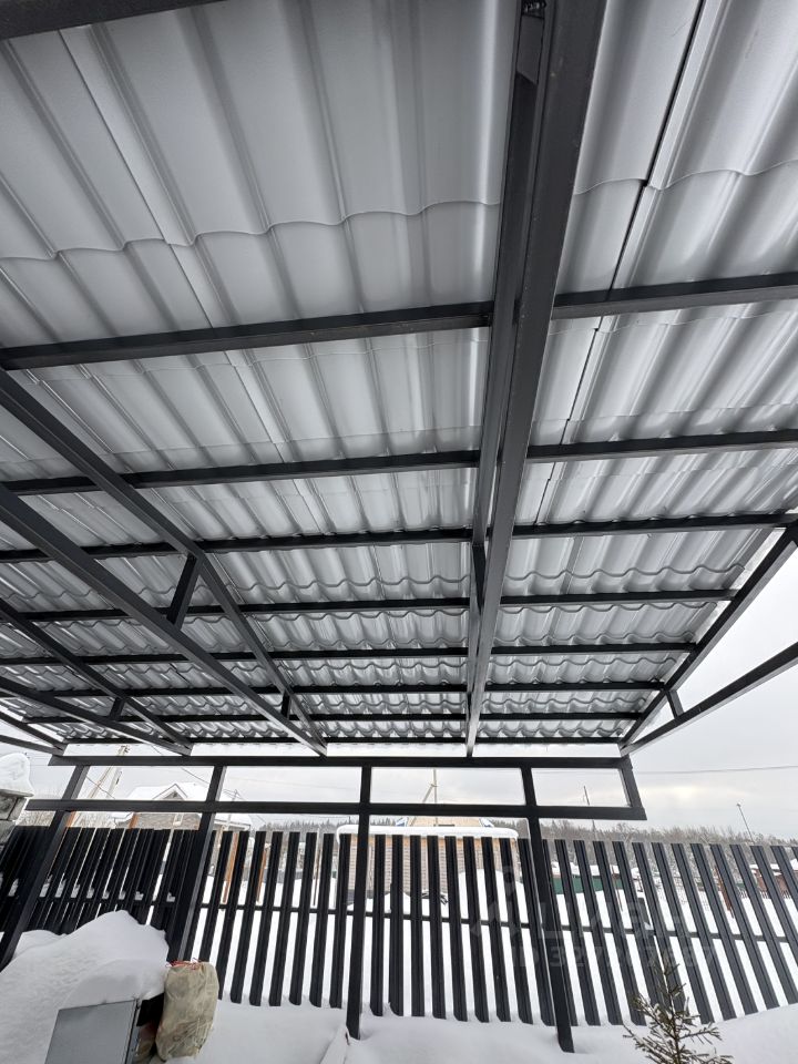 На участке баня, навес на 2 автомобиля и планируется беседка. Сделано наружное освещение.