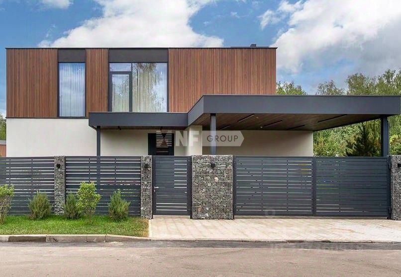 1 этаж: холл, гардеробная, гостиная-кухня-столовая с выходом на террасу, гостевая спальня, с/у, навес на 2 м/м, котельная, 2 этаж: холл, мастер блок: спальня, гардеробная, ванная комната, 2 спальни, су, спальня с с/у и гардеробной.